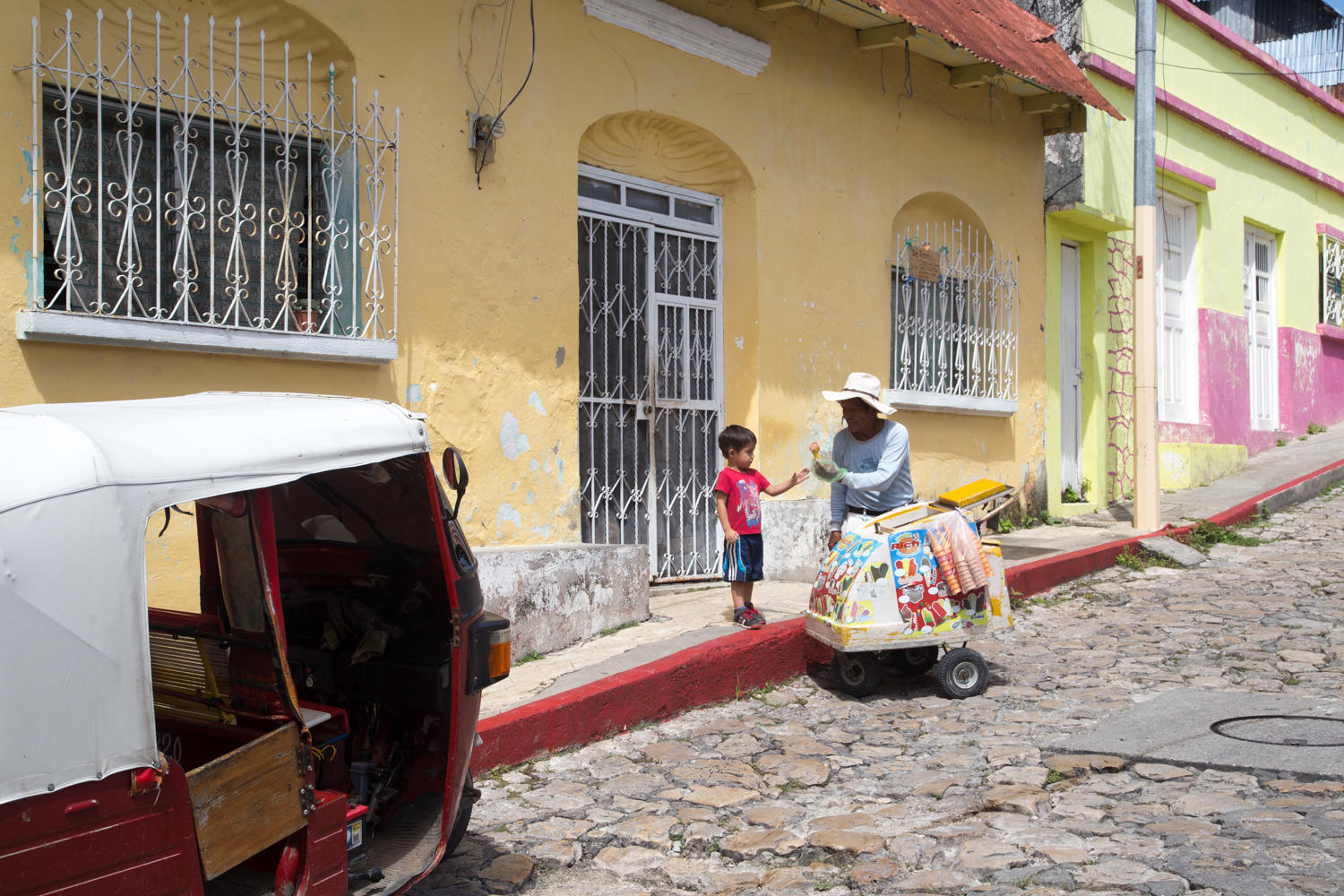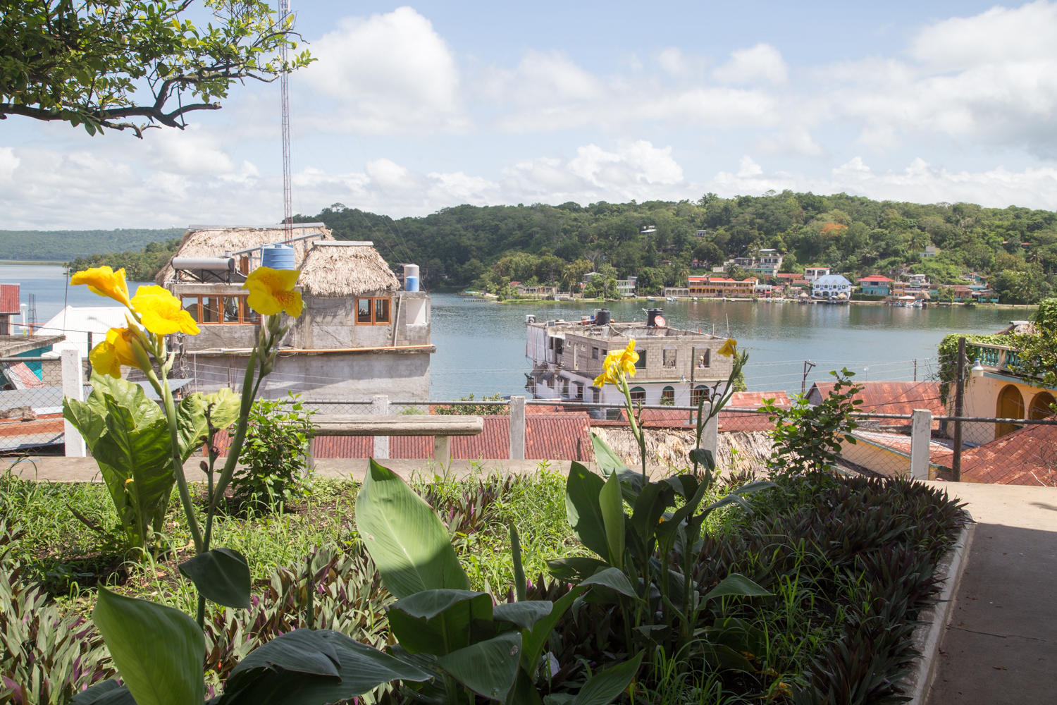 We arrive in Flores very early around 9:00. We check out Posada Don Juan where the Shaw's stayed. A nice place, but riding in we spotted Mirador del lago and decide a fan room will do. For 140Q, room with balcony overlooking the lake, WiFi does work in our room but mostly only in the central sitting area, and hot water shower. We arrange a tour to Tikal through Maya Land. Rachel finds a Guatemala postcard to send to our neighbours Jeremy and Stacy kids, Sara and Lucca. There just isn't a postal system in this part of Guatemala.