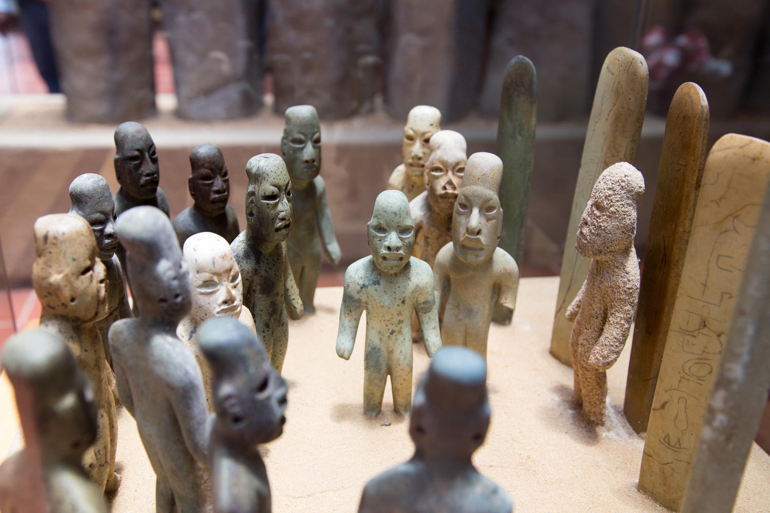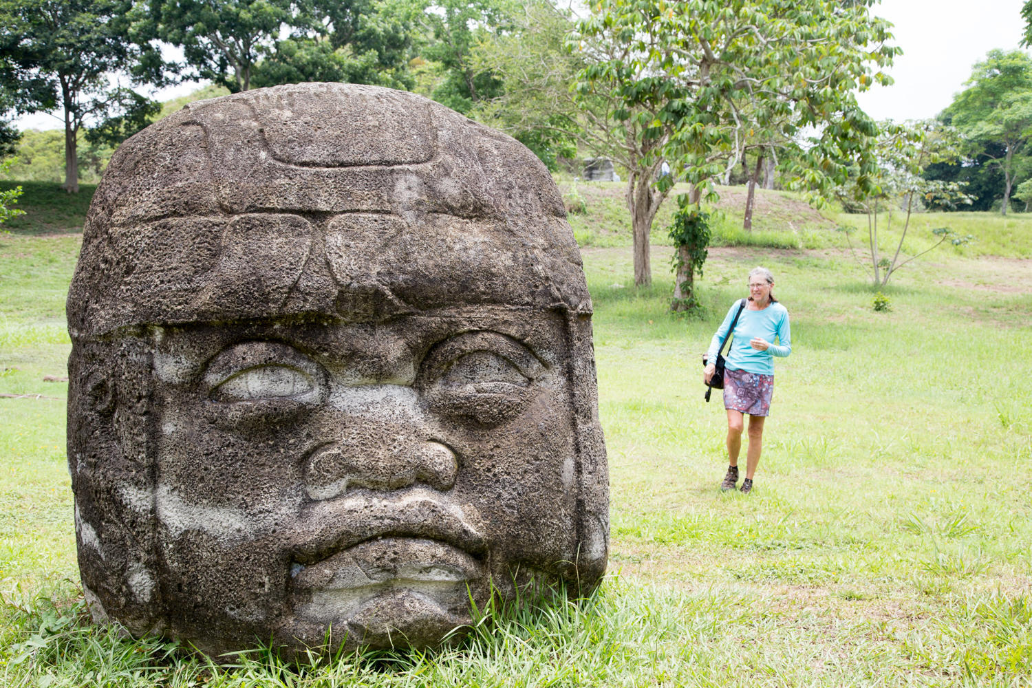 The Olmecs were the first major civilization in Mesoamerica along the Gulf coast in present day Mexican States of Tabasco and Vera Cruz. The name Olmec is an Aztec word meaning "rubber people", they made and traded rubber. They were a complex society without a written language yet influenced later civilizations like the Maya. The distinctive feature of the Olmecs are the giant carved heads of fleshy cheeks, flat noses and slightly crossed eyes. They worshiped anthropomorphic deities like the Maize deity, Rain Spirit or Were Jaguar and the Fish or Shark Monster. The Olmec civilization lasted from 1600 to 350 BCE. It's a shame though that the artifacts were moved from La Venta, the town would have benefited from tourism.
