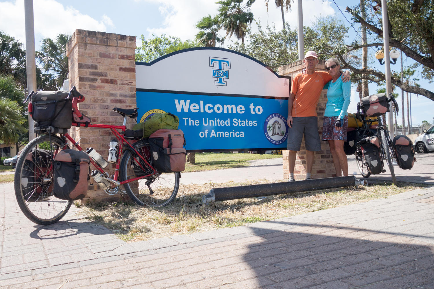 After all the border crossings we've navigated, we missed where to get an exit stamp for Mexico. We pay a quarter to cross the pedestrian bridge and before we know it we have crossed the Rio Grande and we are at the USA immigration. Our passports are scanned, then the agent wants to look at our bags. He puts on gloves then barely looks into the bags that we opened. Oh well, we are back in our home country.