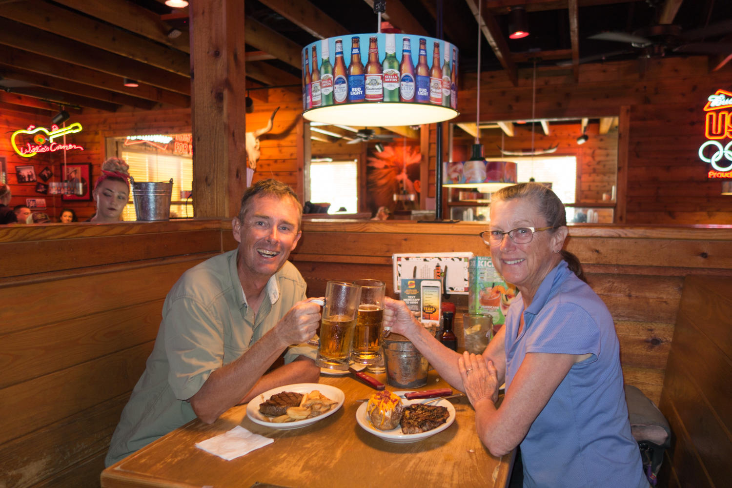 Our first meal back in out home country. The steaks, salad and baked potato are awesome.