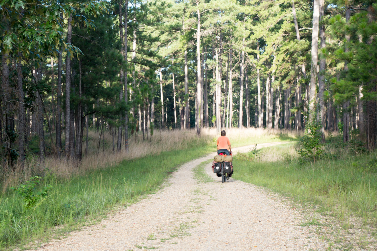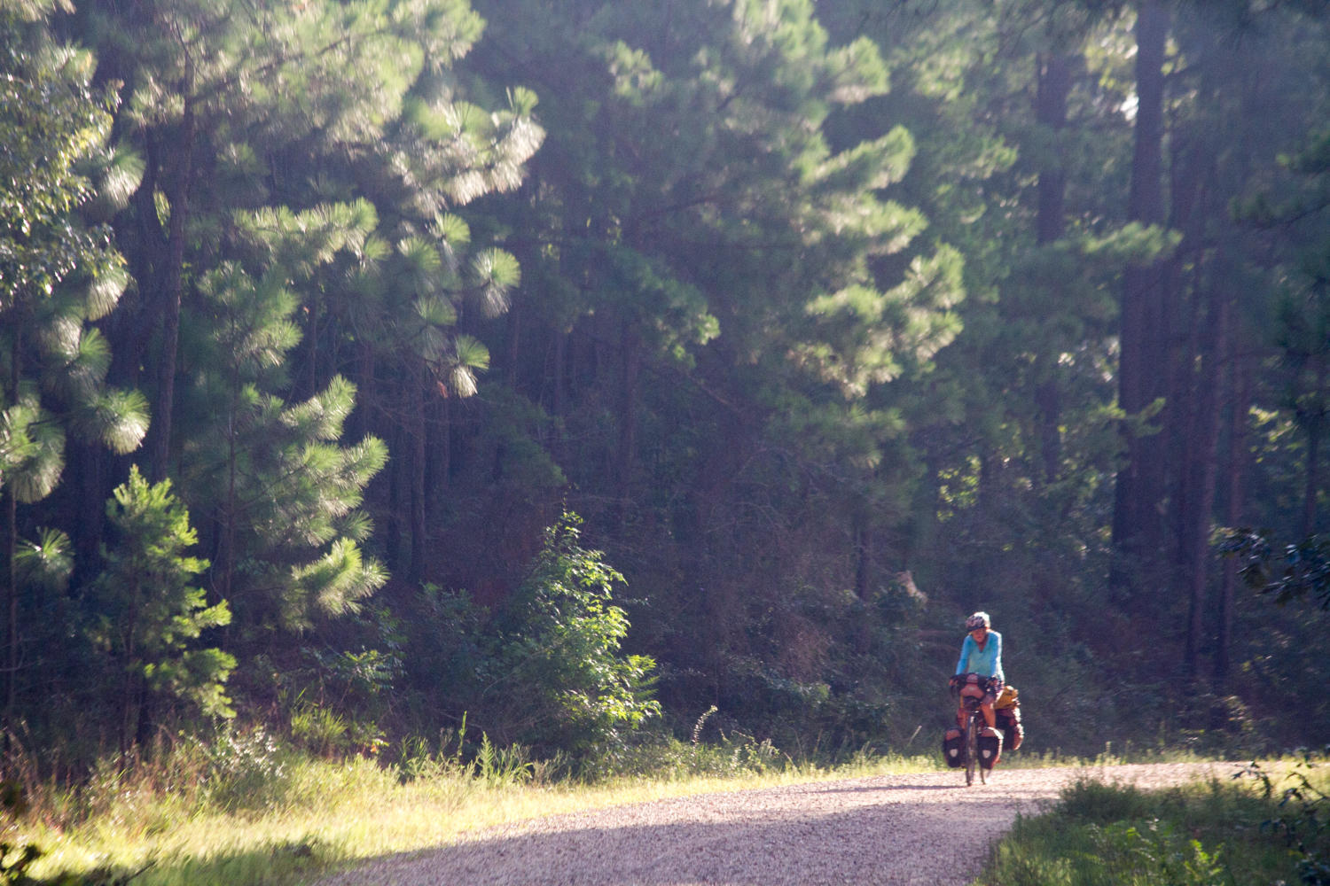 We are up early and miss seeing our hosts, so we leave a note thanking them for their great Southern Hospitality. The first hill away from the ranch is steep, but we quickly go the mile back to the paved road. We go right this time, avoiding the bridge that is out, to Tower Road. This is a pea gravel road and goes through the National Forrest, to West Homochitto road until eventually we are back on the main road headed North.