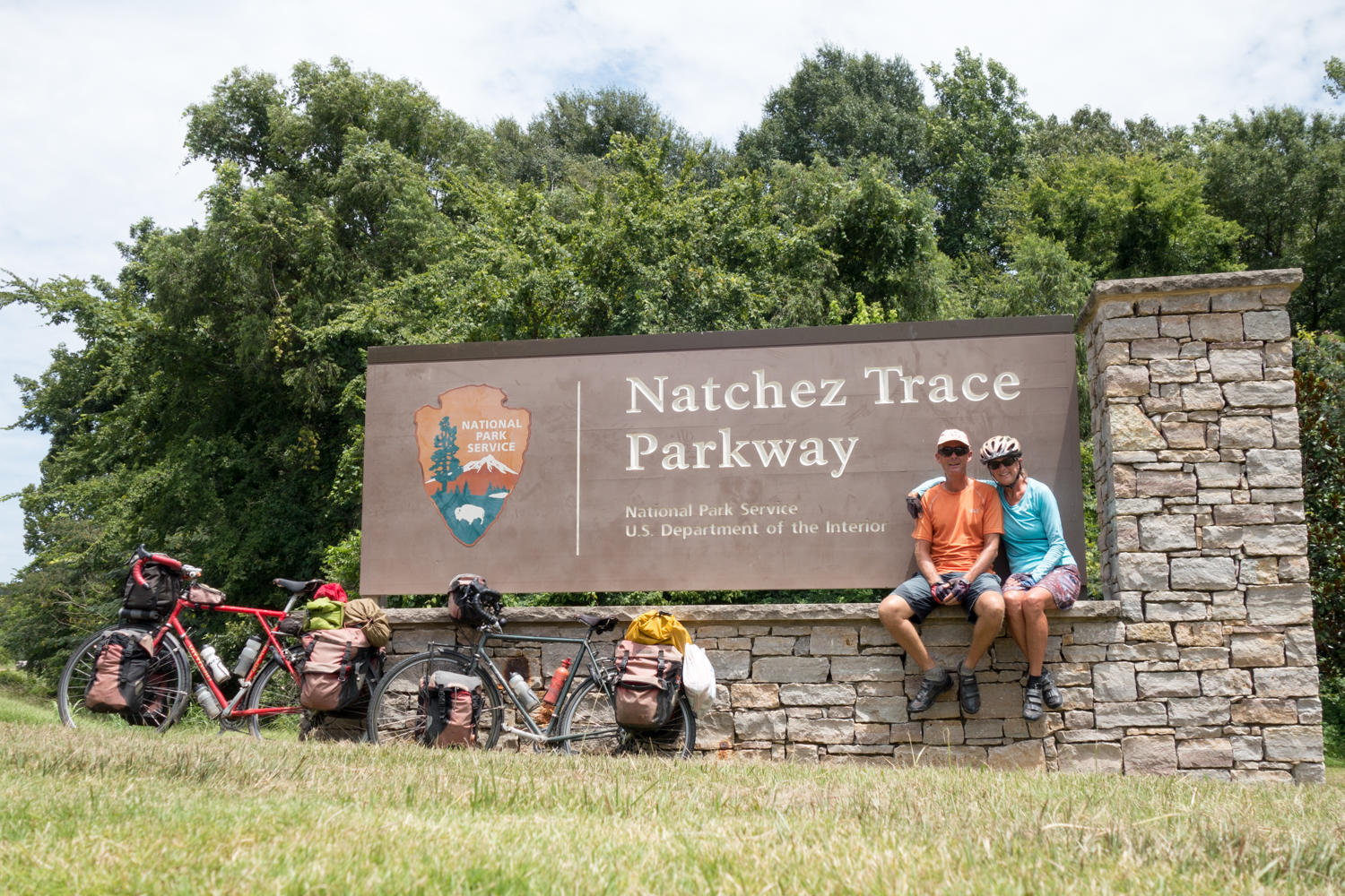 The weather is uncertain, clouds have been building and we are not sure if rain is in the forecast. We have not had internet the past two days to check, so Patrick pitches the tent with the rainfly. Hope that it’s not too hot and muggy to sleep. We have a great map of the Trace that outlines the places of interest. So we will probably be stopping frequently to learn a little history of the Natchez Trace.