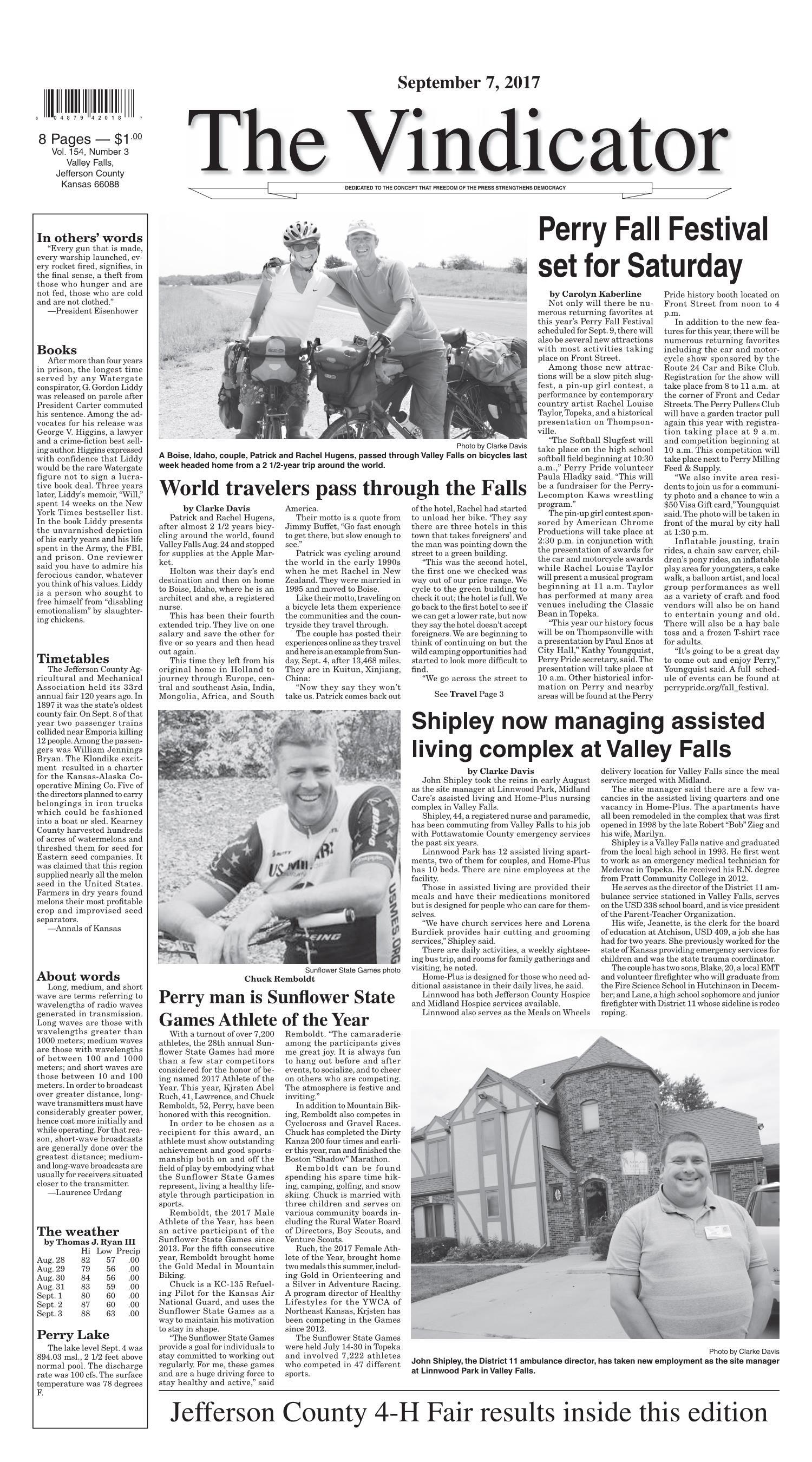 We barely make it over the hill and out of town when Clark, a journalist of the local paper The Vindicator, waves us down from the roadside. Ann had called him and he did not waste any time tracking us down. Good thing we did not rob the back, no way you’d get away with it in Valley Falls. We have another nice conversation, pass on our blog’s information and Clark promises to email us a pdf of his article. (Edited: he did send us a link on two pages http://vfv.stparchive.com/Archive/VFV/VFV09072017p01.php?tags=patrick|hugens)