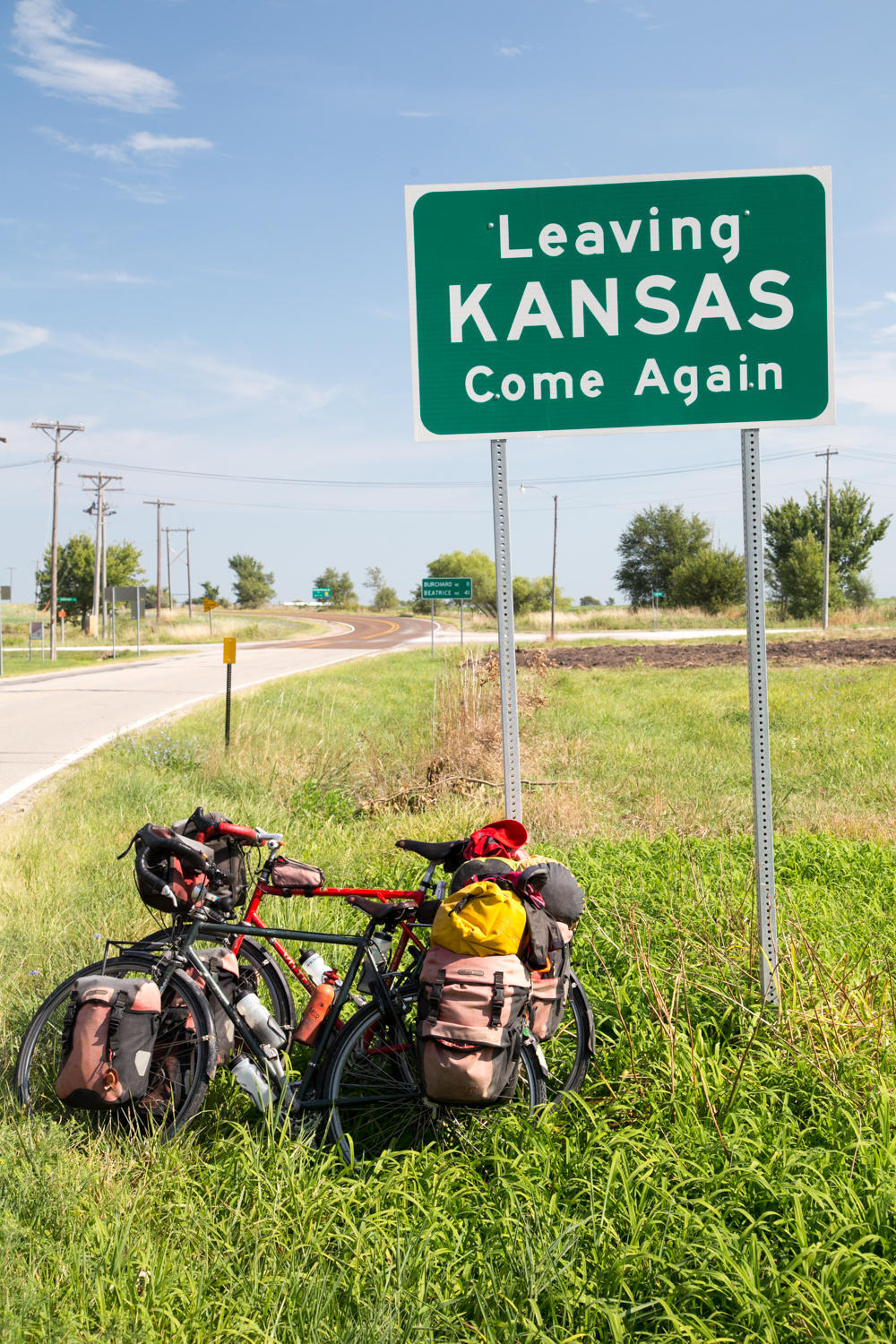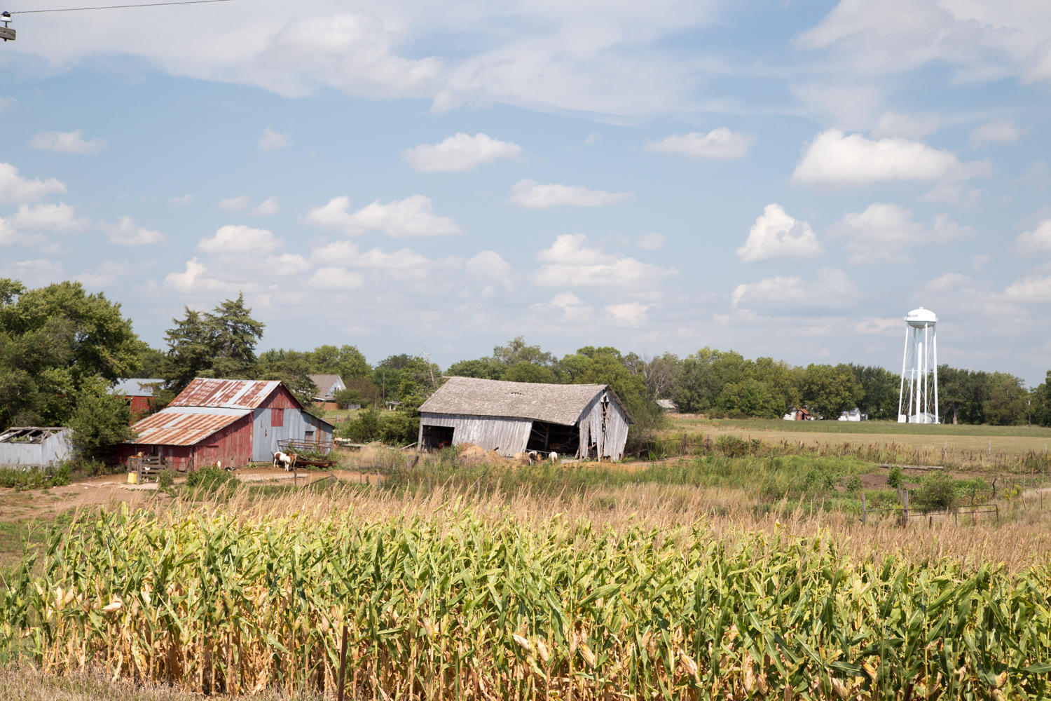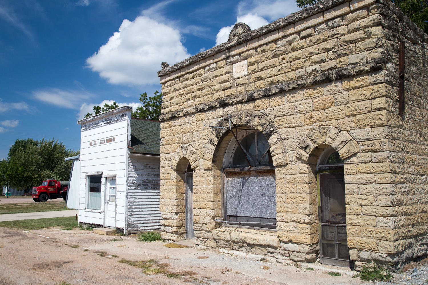 As we are packing up, a couple from Kansas in a small old time camper comes over to talk with us. The road continues to be rolling and less steep in sections. Lots of corn and soybeans, and old windmills by old barns. Our hopes for a second breakfast in Axtell were dashed and also in Summerfield, there are no cafes. Summerfield though has a great city park with shelter, toilet building and water that would make a good place to camp. We make our standard ham and cheese sandwich. There is not much going on in the town for a Saturday morning, not even the sound of a lawn mower. Right out of town is the sign that we are leaving Kansas and a little beyond, Welcome to Nebraska. We are on the prairies.