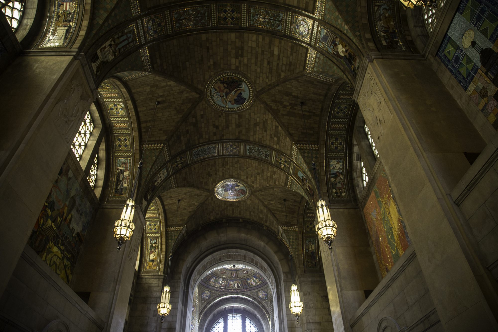 Our host has a great location only blocks from the Nebraska State Capitol. We visit for a while with Kevin, clean up and walk to the Capitol building. The main entrance puts you on the first level which feels like you are a subway, with low stone vaulted ceilings and long corridors. The second floor though is wide open with high ceilings, a high rotunda and beautiful artwork. There are tiny old elevators that take you up to the 14th floor and the observation decks on the tower. What an impressive State Capitol!