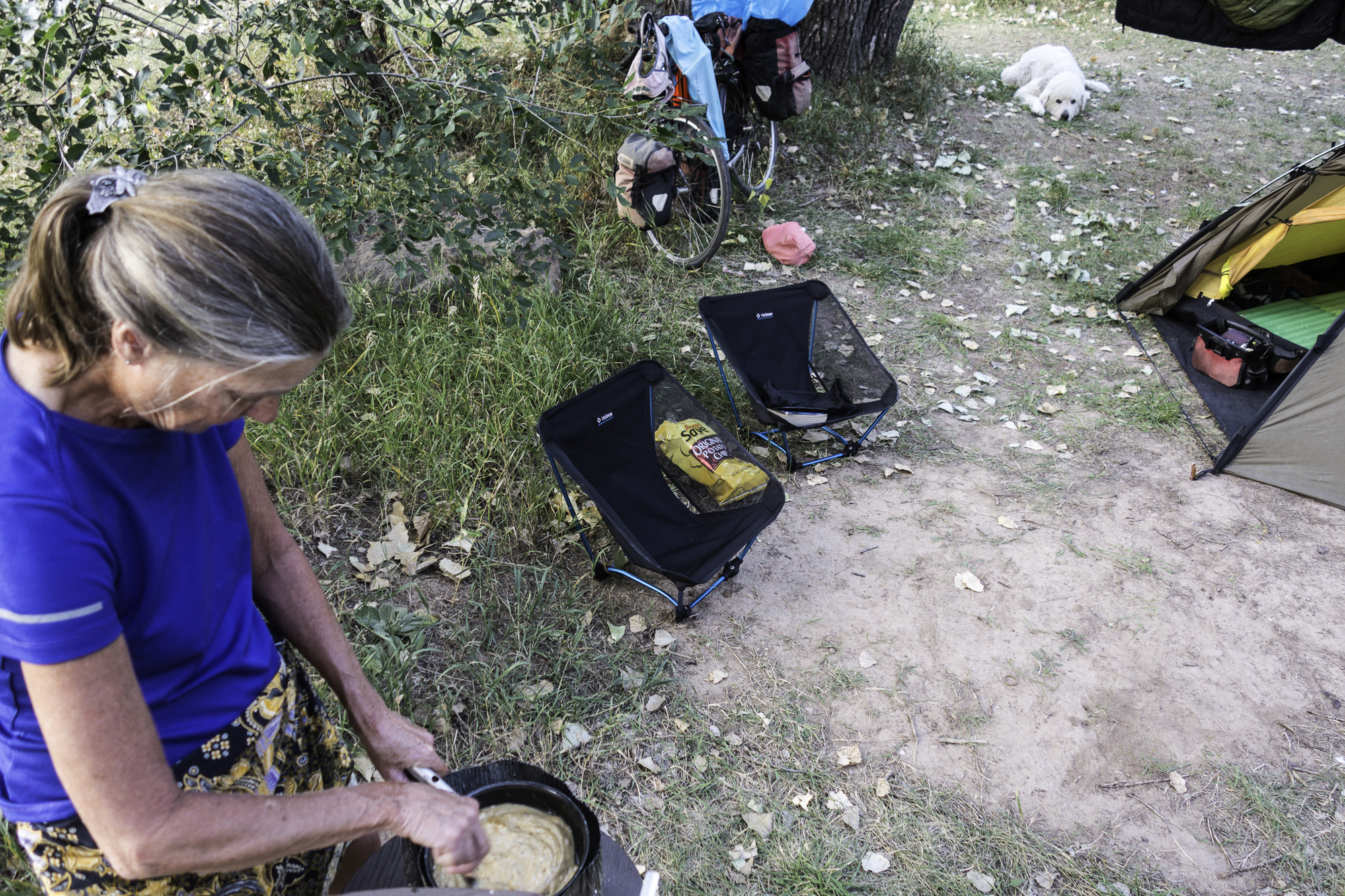 After cleaning up Patrick rides another kilometer into town for beer, snacks and tonight's dinner. Other than that it is a nice afternoon listening to the creek with a book to read and a cold beer.