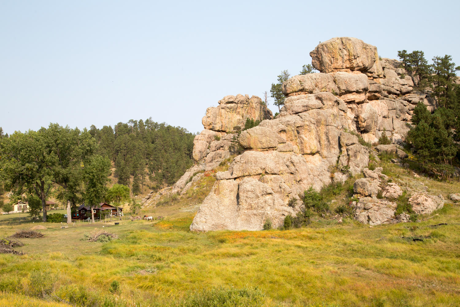 The day starts with another flat tire for Patrick. But the good news is that he was finally able to locate the small wire that was causing the flats. We ride through Hot Springs and keep climbing into Wind Cave National Park, a beautiful high plateau with views in all directions. The grasses are gold this time of year, we see buffalo and lots of prairie dogs. The road keeps climbing until finally a downhill to Pringle.