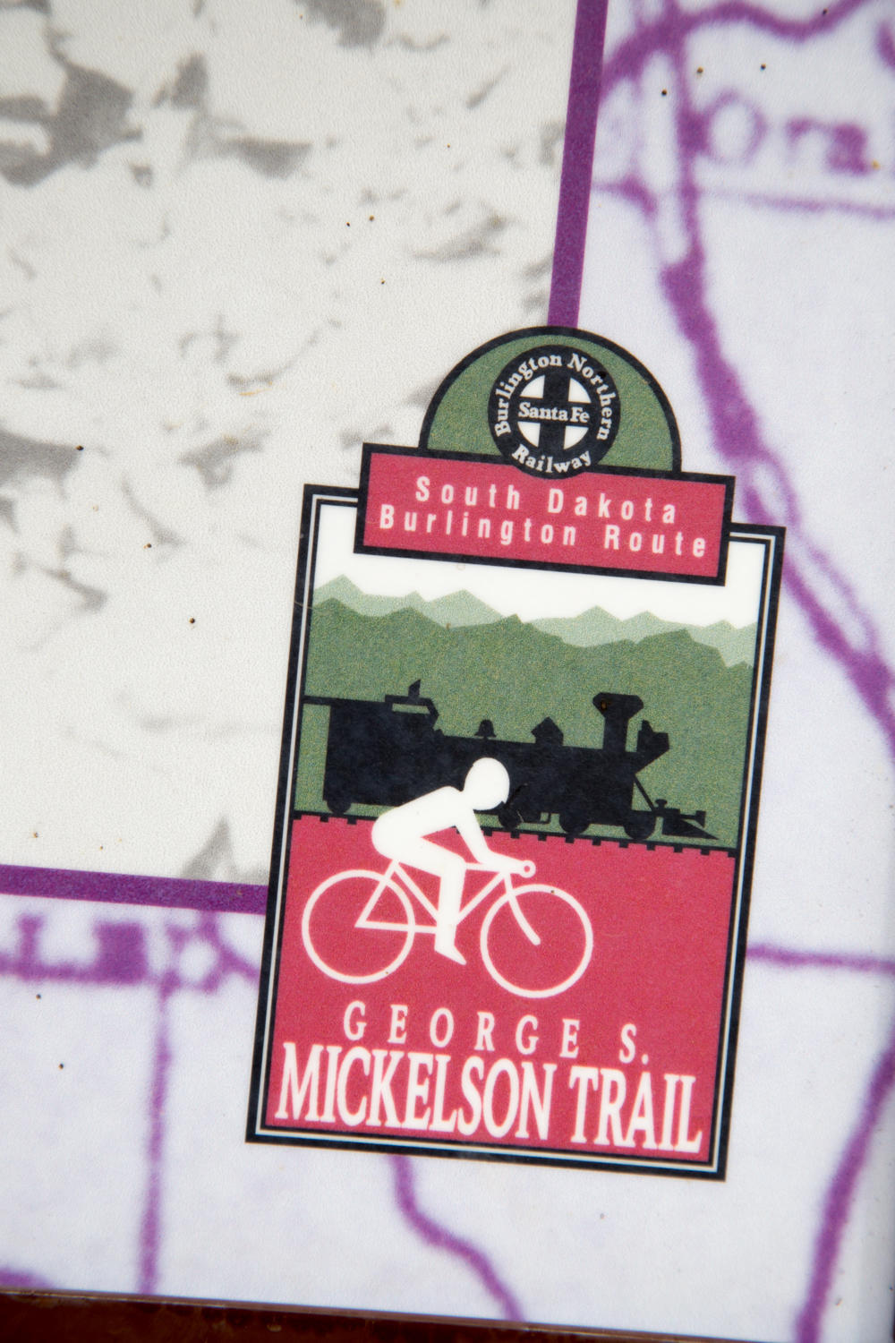In Hill City we battle the Sunday morning crowds into a packed cafe and have a nice second breakfast at about double what it would have cost in Nebraska. It is good though. Then starts another climb, followed by a long downhill and the longest climb of the day: about 30km up at a very gradual grade. But it is still hard work, the limestone just does not roll as smooth as pavement and you always have to be on guard for loose spots. The great scenery and no motor traffic makes it worth it though. For a big part of the day the trail is away from roads, sometimes in its own valley with only a river and other cyclists around. There is a fair number of riders on the trail, most of them very friendly and ready for a talk.