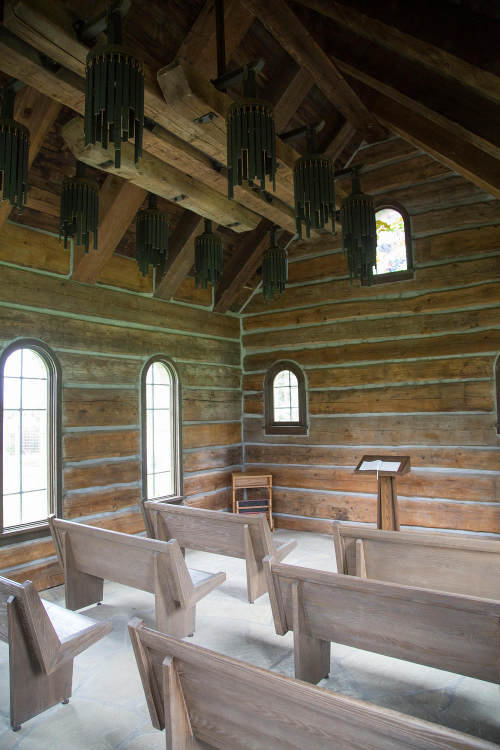 When we reach Ucross, we see the buildings of the Ucross Foundation. This is a 20,000 acre working cattle ranch turned non-profit by owner Raymond Plank. The mission is to foster creative expression by artists through residency programs. We stop at the Chapel that is modeled after the Church of the Good Shepard at Lake Tekapo in New Zealand. The grounds around the chapel are beautifully landscaped.