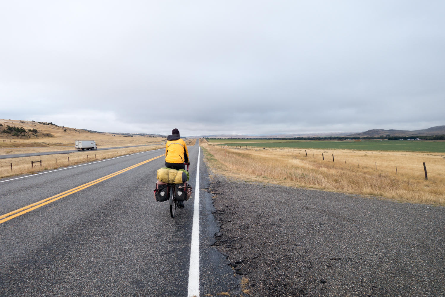 Our idea of an "around the world" trip is fairly simple: cycle 40,000 kilometers without riding in circles too much, and there you have it. And 18 kilometers out of our warm motel room in Big Timber we are there. Rachel's first comment is: "Can we go home now?"