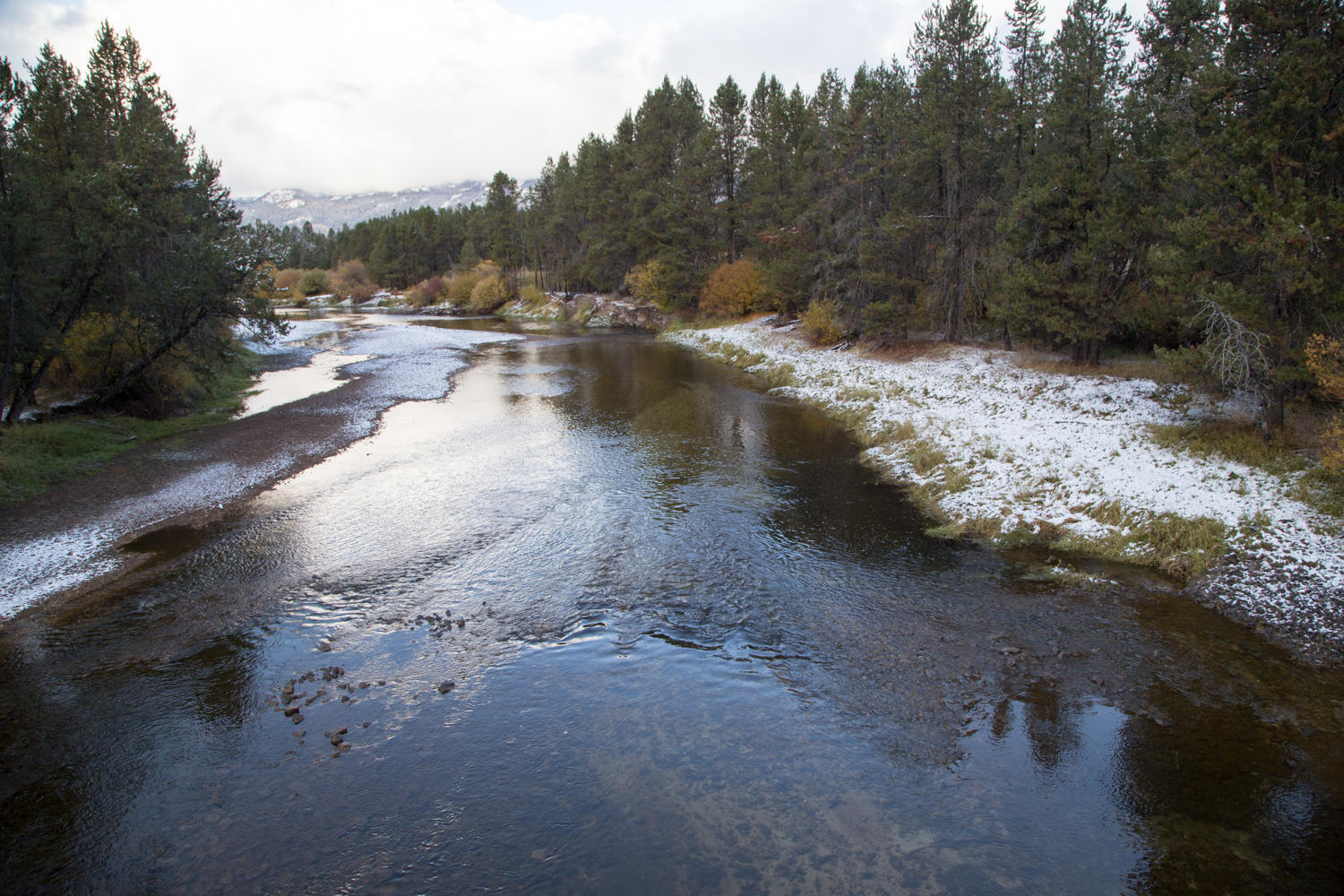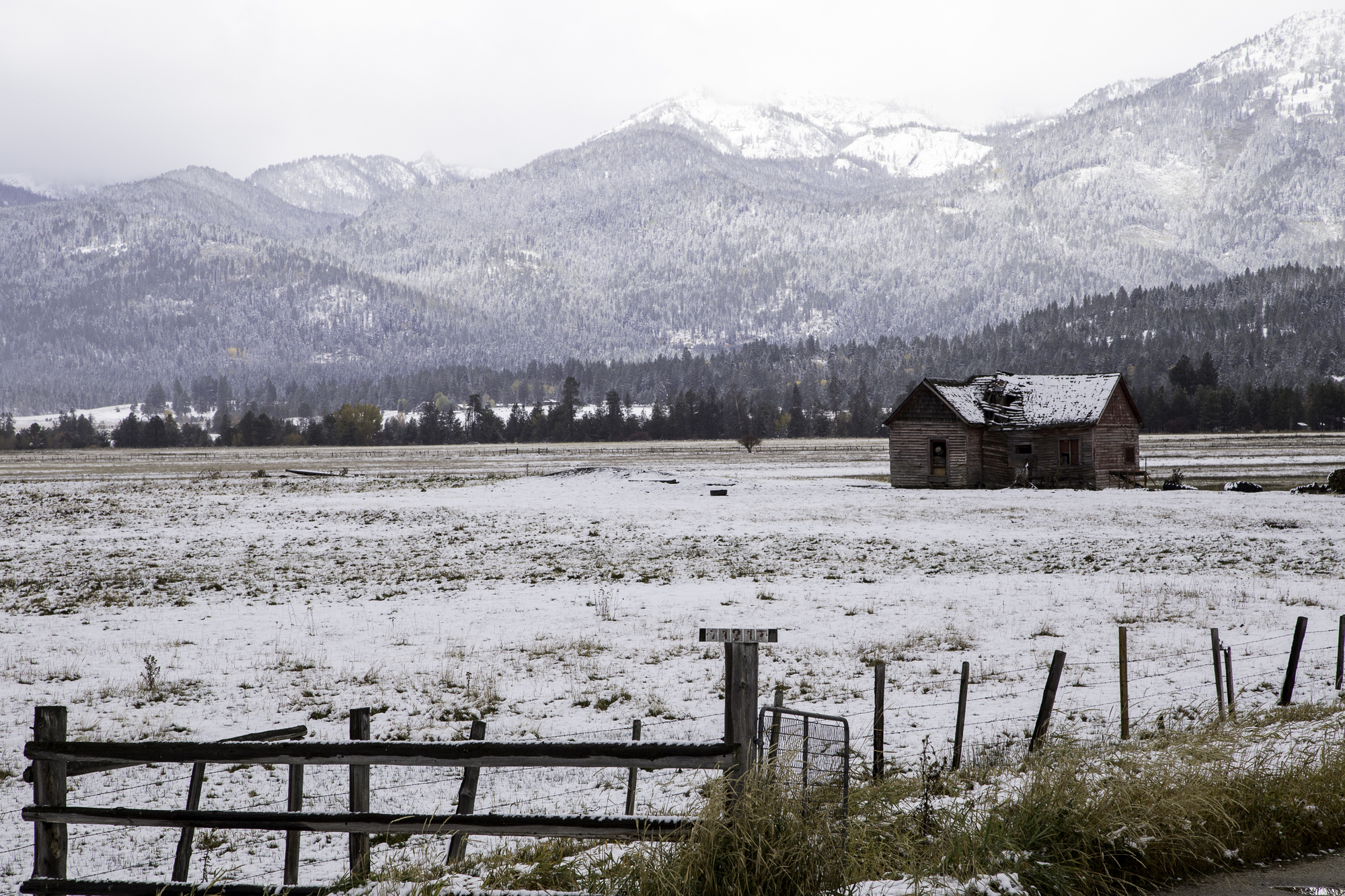 A dusting of snow blankets the ground when we leave Frank and Judy's cabin in Donnelly.