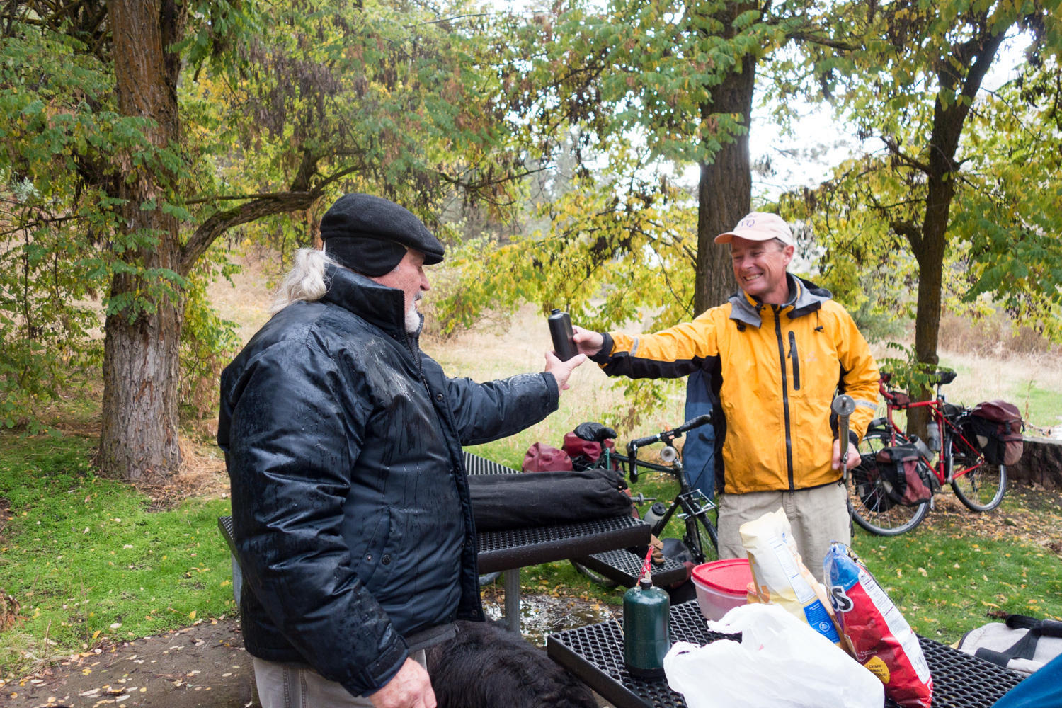 Our last night on the road we camp at Chief Parish, a day-use area along the Payette River. It is closed for the season, but that does not stop these cyclists.