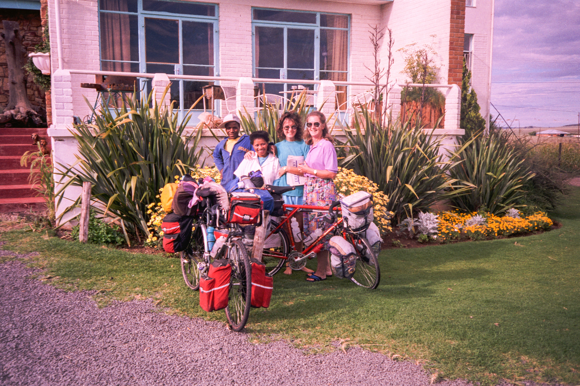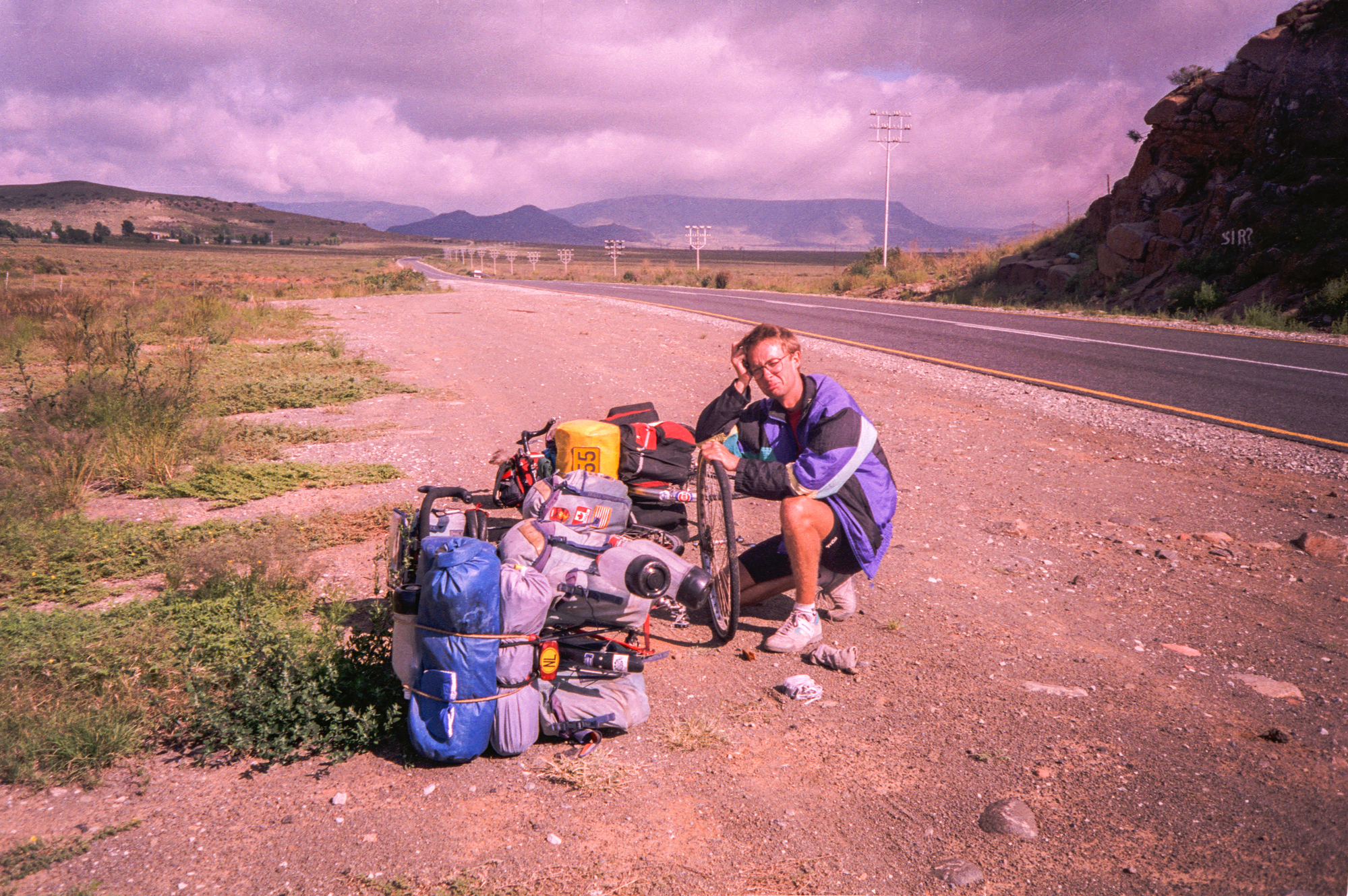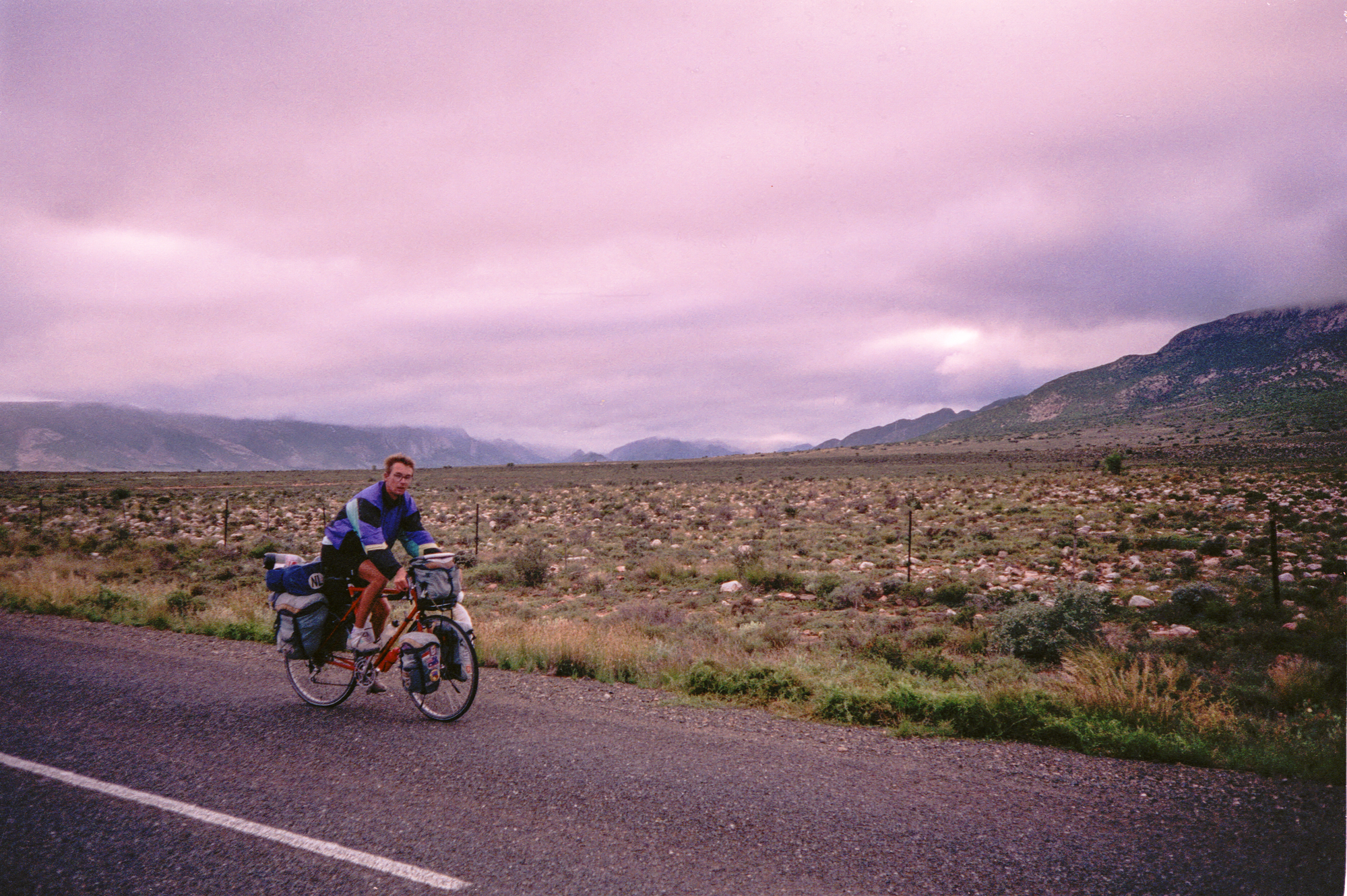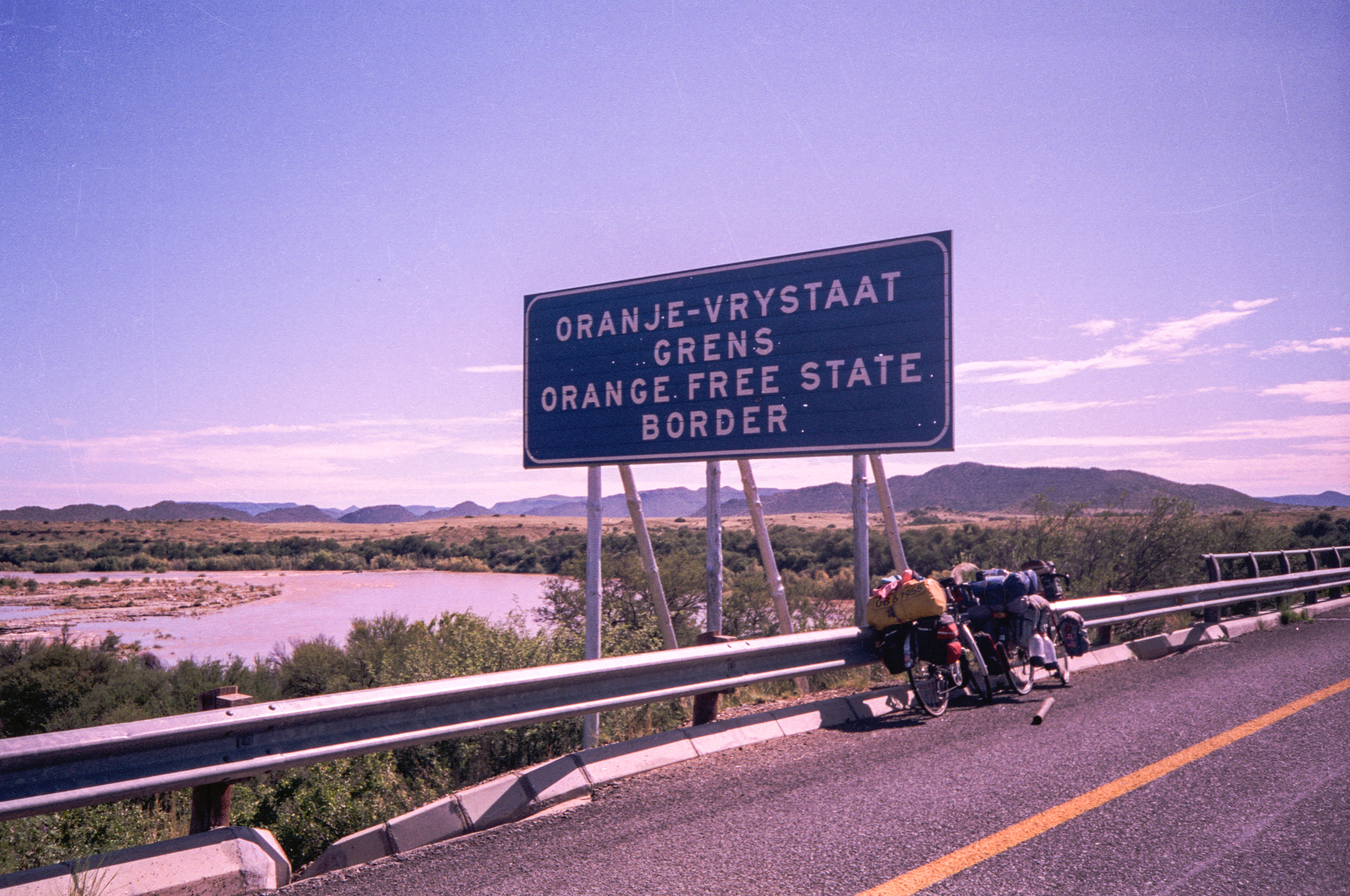The next day we cycle to Colesberg (99.8km)and see grassy plains. The following day to Thrompsberg (121km) we again ask to camp at a motel and given a room instead.