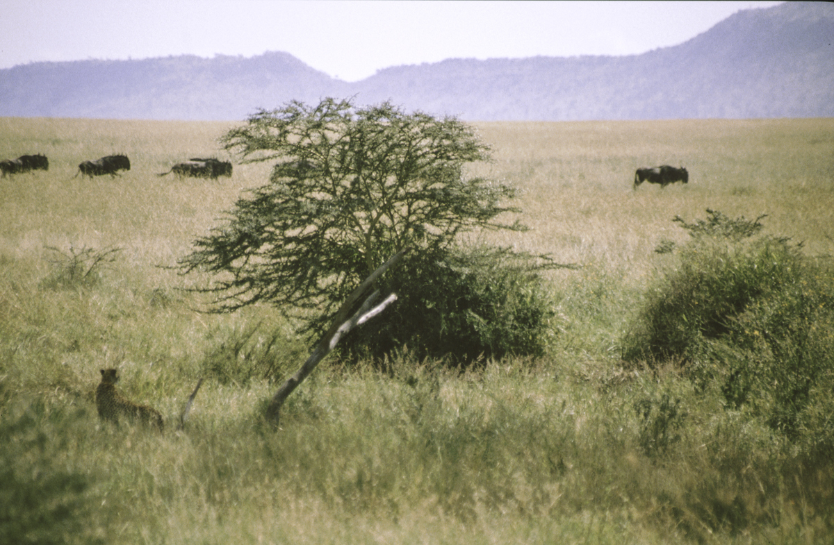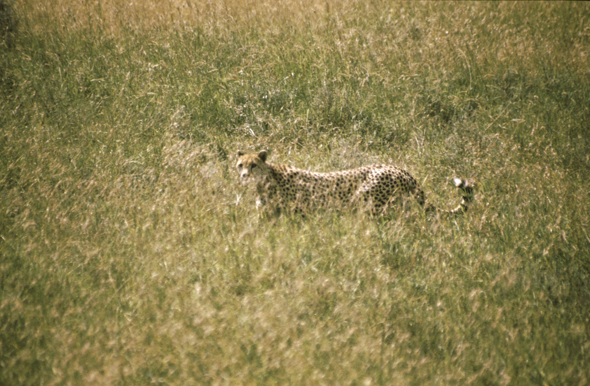 Our guide had watched how the giaraffes were moving.... "There's a leopard hunting," he says and drives on....and there we spot a leopard.