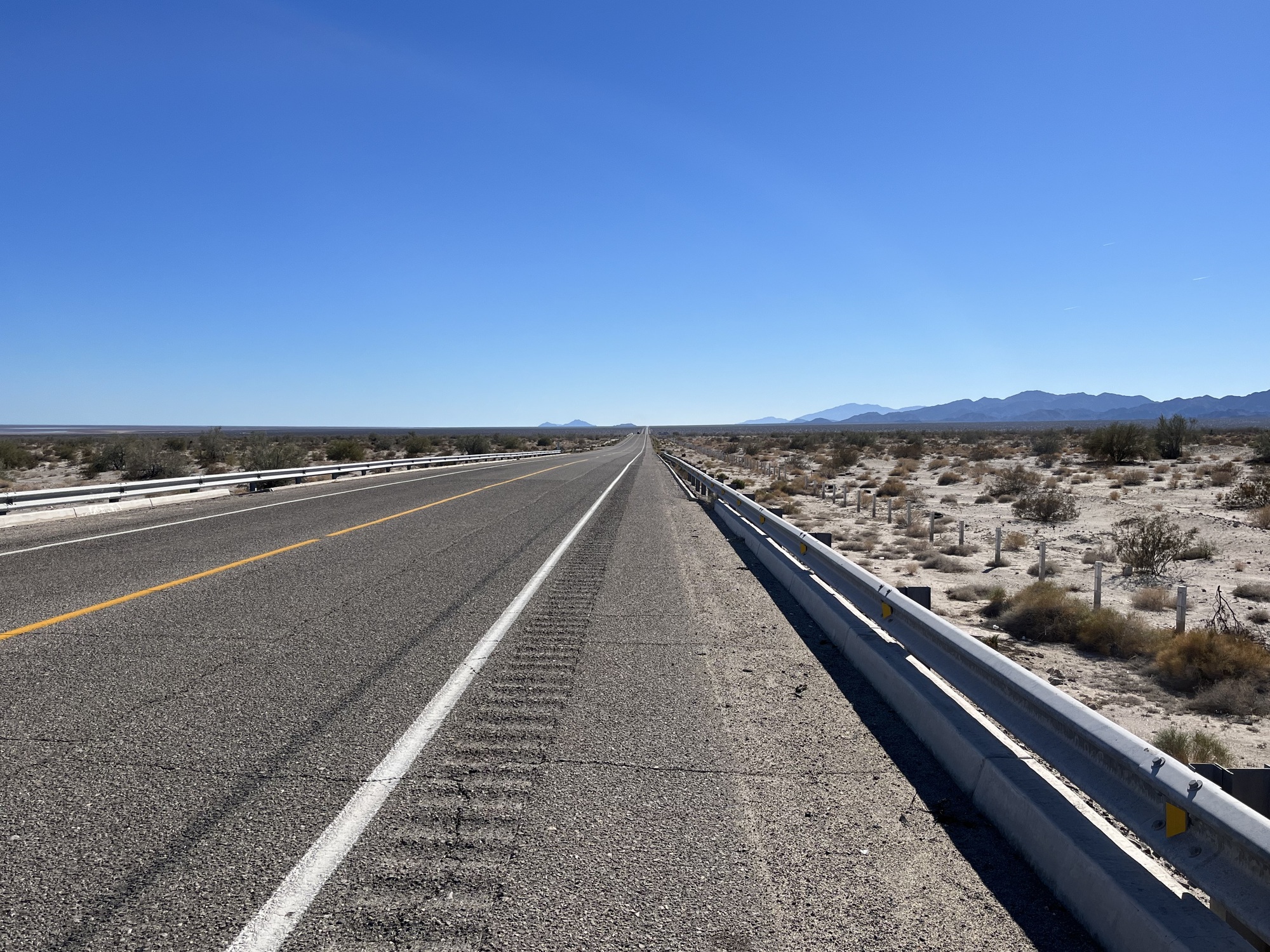 I actually the scenery was a bit better than yesterday so wondered how they fared with the mud flats. My seat was having issues again I don’t know what’s wrong or how to fix it so it kept slipping down a little bit as I was riding it’s gonna drive me crazy if I can’t get it figured out about 20 miles in was the military checkpoint but they just waved me on through. Future cyclists, there is a small restaurant and some junk food snacks but most importantly, water that a man operates out of his house. That was where I should’ve taken a break as he had a picnic table out front. sin However, since I only bought water and I was confused I went a little bit further and then I saw another place to pull over, but then I ended up eating on the curb.