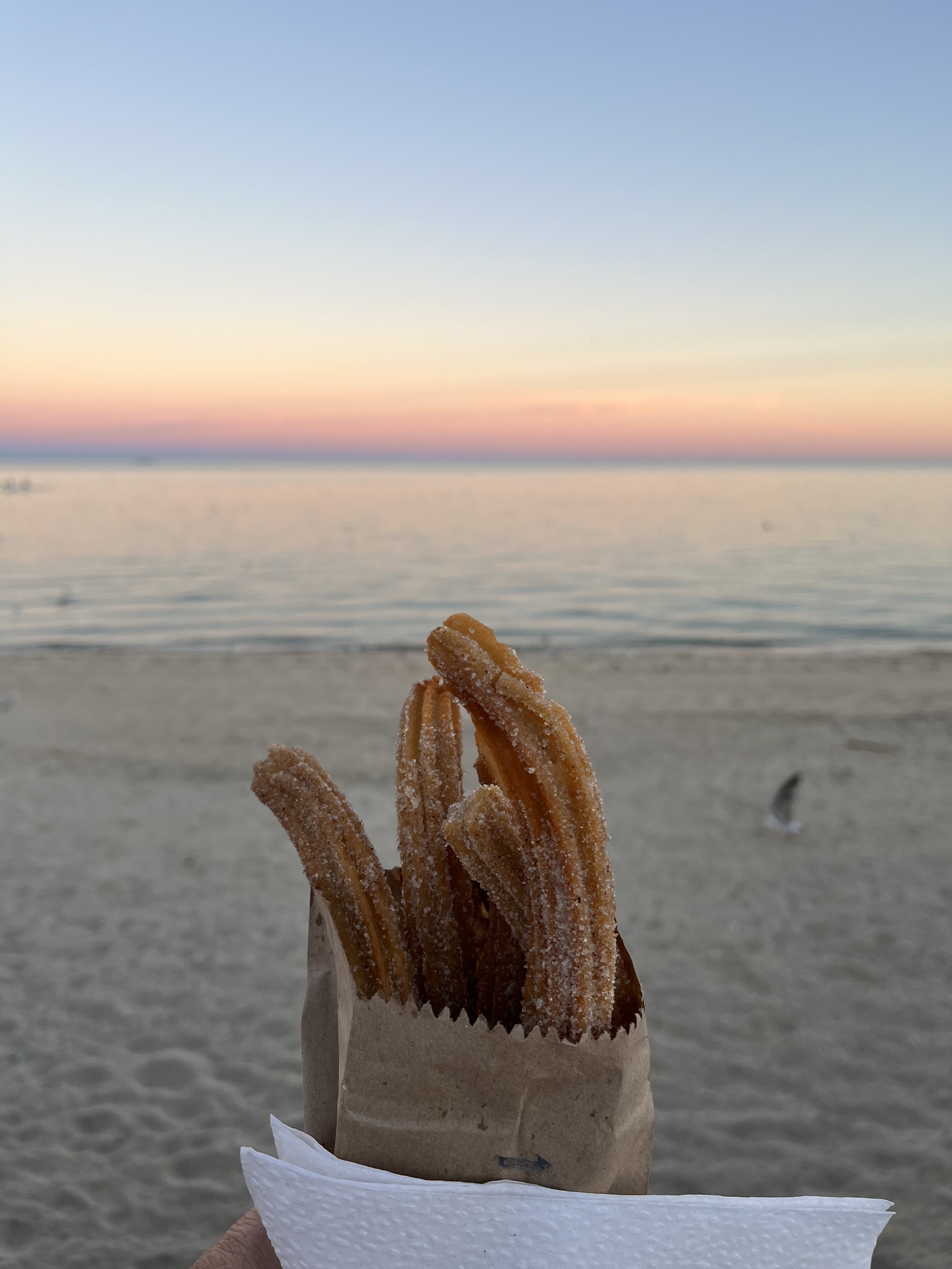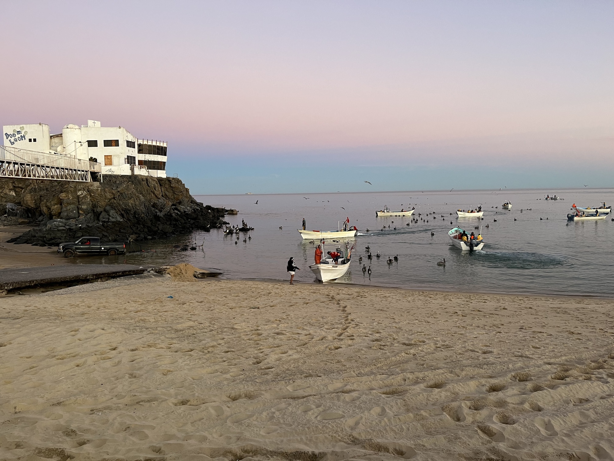 The first day, I went down a side street looking at the camping spots and checked prices at a couple of different hotels. In the end, I realized my hotel was definitely a good deal so stayed put. I spent way longer than I wanted to trying to sort out pictures from my phone, to Windows One drive, to my laptop to get them on this website. I think I have the kinks worked out now. Later that afternoon, I went down to the Malecon and walked the opposite way. But first, I stopped to buy what I thought was going to be one churro. Upon closer inspection of the sign, I saw that I was getting six churros! And yes, I managed to sit on a bench there watching the birds, seagulls, pelicans and others, swarm the boats coming in from fishing.