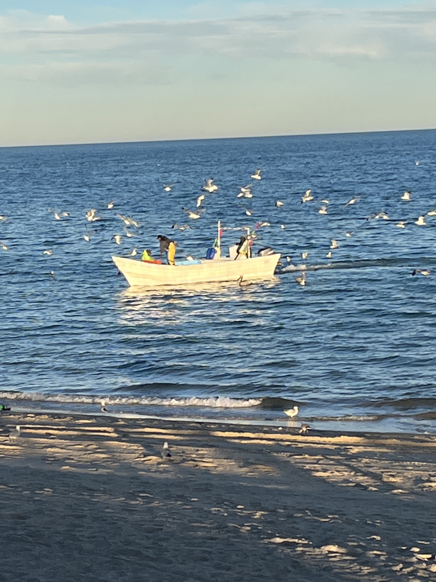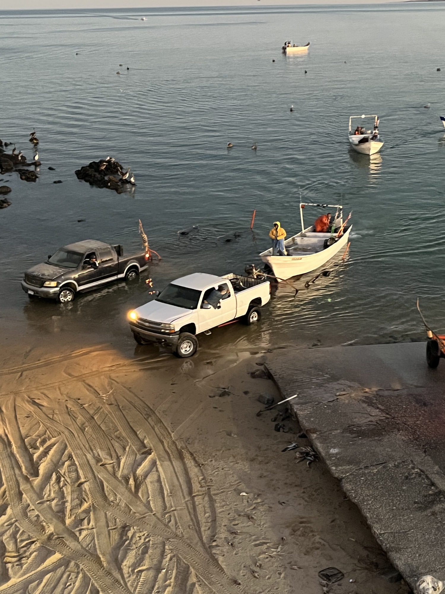 I walked further down and watched the row of trucks pulling trailers, back down the boat ramp so they could get their boats out of the water. A few pickup trucks came in from the side and I was surprised how far they backed into the water. I thought for sure one truck was stuck forever, but with multiple attempts at loading the boat, then unloading, then loading and trying again, he eventually got free of the sand. I was quit a production and I really enjoyed watching the chaos come to order. I found it very amusing that they drive down the streets with the fishermen still in the boat. That would be totally against the law in the United States!