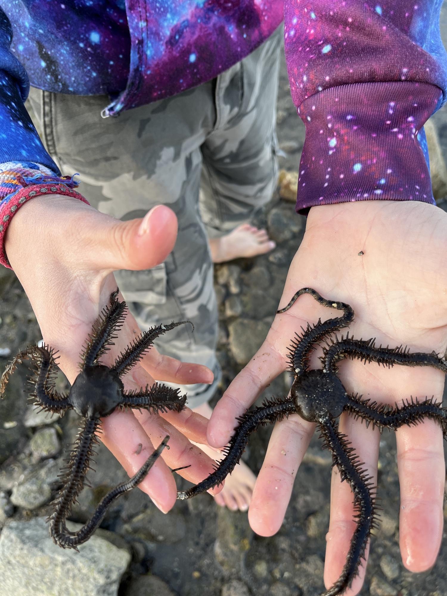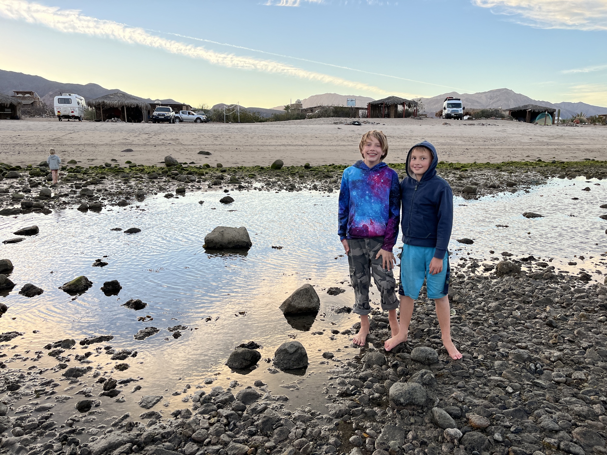 This morning I had a great discussion with a guy, Travis, who was there with his wife, Torey, and their three boys. He’d been coming here for 25 years as he was a turtle researcher and I learned so much. It was very interesting seeing how they were able to get the villagers to stop poaching turtles and instead focus on conservation. It was a success story for the turtles. Later that day, I was invited for birthday cake for one of the boys. Who am I to say no? Afterwards, the boys, Jasper, Colby, and Sterling went to the tide pools and showed me so much. They were flipping all kinds of rocks so finally I picked one to see what was under it. Mine was disgusting because it had a bunch of sea cucumbers that looked an awful lot like Pacific NW slugs. Gross! The youngest was cracking me up with his quips. He decided so knew absolutely nothing about marine biology. What can I say? It’s been awhile since I explored a tide pool! Perfect way to end my time here. We are leaving in the morning. Excited to get back on my bike.