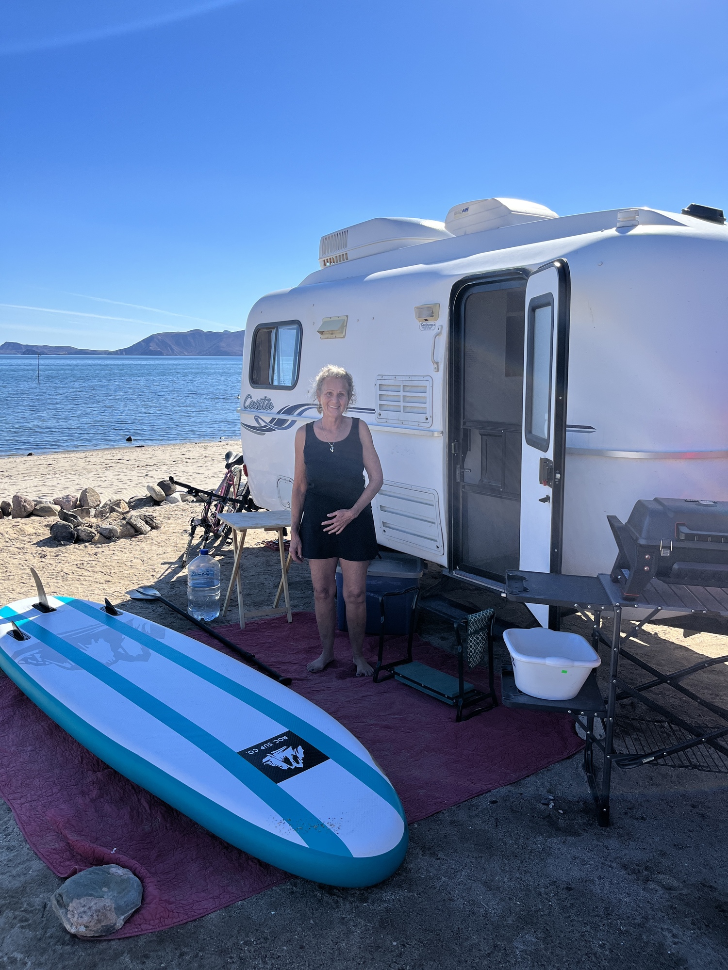 I had met another lady, Dawna, and visited with her last night. It seemed we had some things in common. Today, she found me and invited me over for lunch. She then hands me money for my whale watching trip. I had mentioned I’d probably go twice as when would so get to experience that again. I tried to turn it down, but she wanted to do that for me she said. We had shared enough with each other that we’d both been through some hardships. Her son had also bike toured to Argentina and back and had been shown kindness on the road. It was very thoughtful and kind of her. A true road angel!