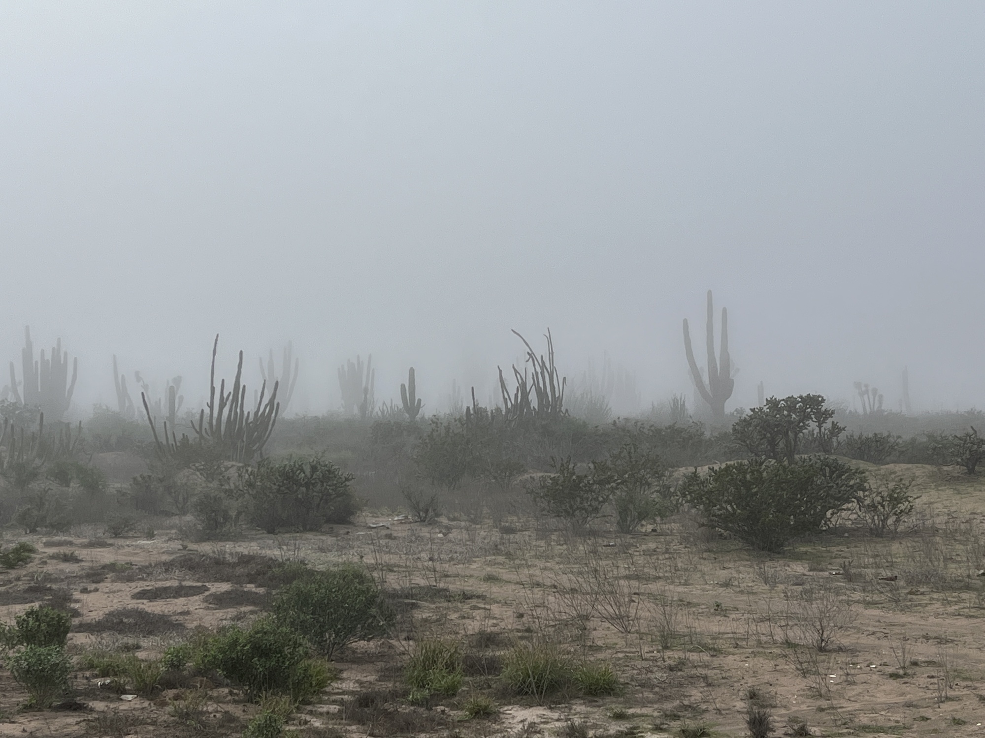 I left my hotel to be at the grocery store across the street right when they opened at 7:00am. It was a bit chilly out and they didn't open the doors until 7:10am. There were a few clouds in the sky, but blue sky as well. Imagine my surprise when I went to leave and I was greeted by a nothing but fog. I rode through town guy yelled "hello" and then went on to shout a bunch of other phrases to me including telling me he loved me. I may find a husband yet!
