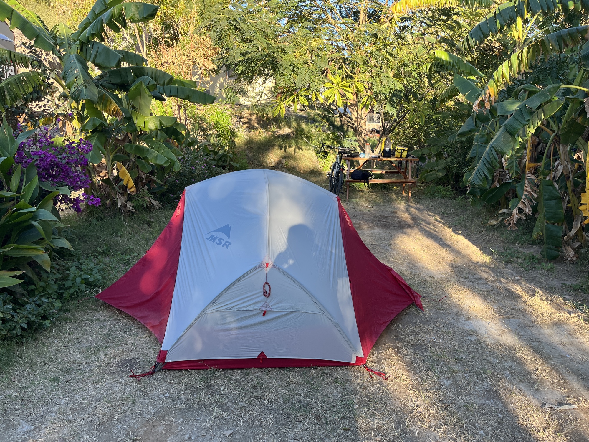 From my Facebook notes, I noted the day ended on a hilly note as well. I actually saw some people pulled over with Oregon license plates, and although I had enough water, it was a bit warm and I was really craving a cold one. They gave me one which was at least colder than mine. Good thing I rested up because some more climbs were coming and one was a bit steep for awhile. If I remember correctly, this was also the day of a really fun downhill into Mulege. As I was pulling into town I hear my name being called. Its my RV friends hanging out at the brewery. I tell them I need a cold water and Brenda actually went and got me one. She said I've never asked for a water yet so she knew I needed it. Delicious and was fun seeing them again. Ran into Keith again at the brewery as well. We're both camped at the campground which is a pleasant little oasis.