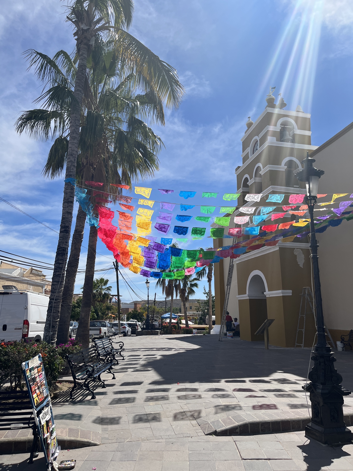 Rode into the touristy town of Todos Santos which is as people described. Artsy, with lots of cafes. My kind of place to play tourist! All the hotels were expensive so I headed to the only hostel in town where I knew I could camp. Hostel was okay, but it definitely was a party hostel and I'm much too old for than scene. Ran into Ben a guy I met up in San Ignacio so it was fun chatting with him.