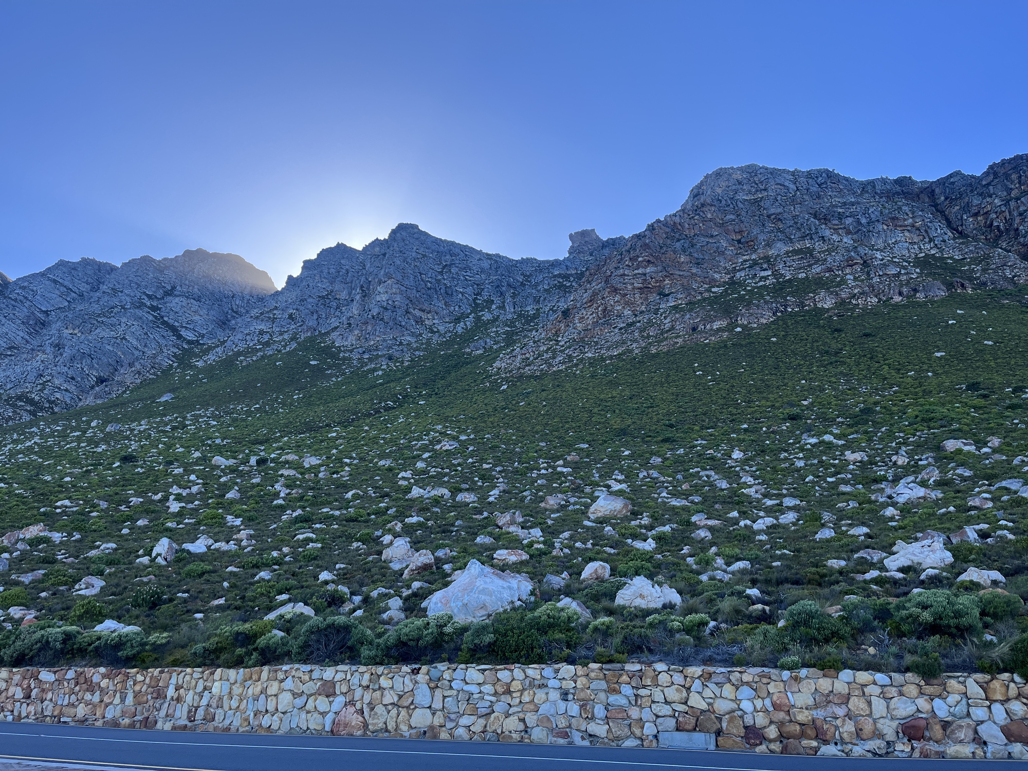 Remember I said the scenery was just amazing. Mountains on one side and the ocean on the other. So pretty. One of the better rides I have ridden. It's called Clarence drive and it's a popular ride for cyclists. Traffic left something to be desired. The drivers here don't seem to slow down or move over and give me much space even when there's room to do so. The views overlooking False Bay were fantastic. They actually have a shark watching place. I was told when the water is clear, they are so high up, they can see the shadows moving in the water. I guess the great white sharks had disappeared from the area for awhile, but now they are returning.