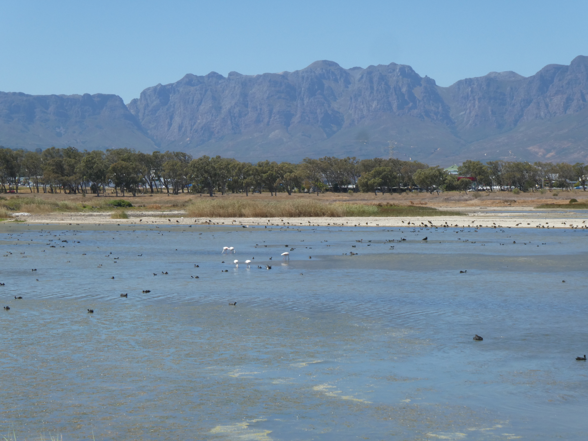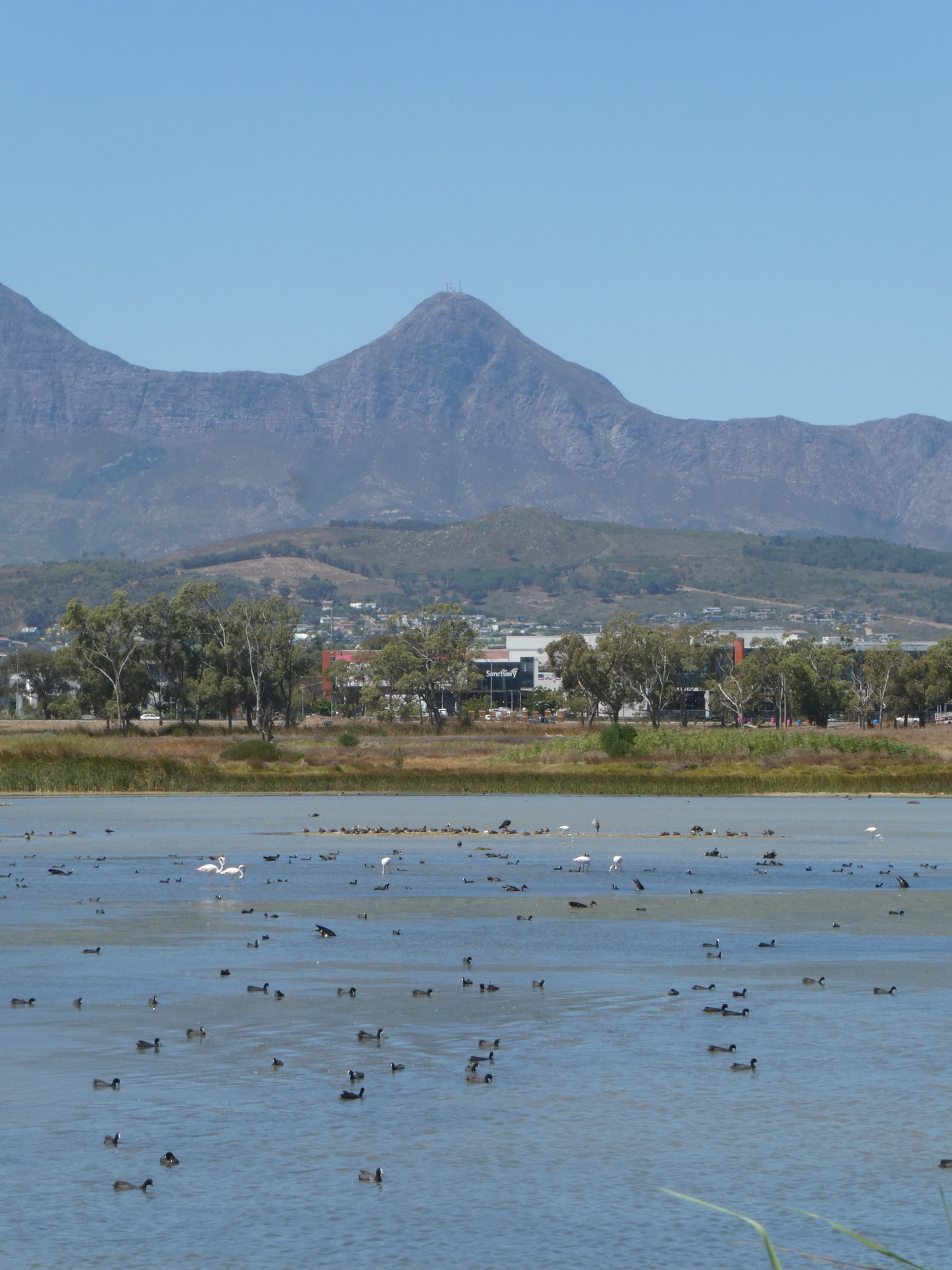 On our day off, Johan drove us all over so trying to find a paper map of southern Africa. No luck finding one though. We were talking about the route and I asked if we were going to this one town known for flamingos. Penny said no, but Johan pipes up that there were flamingos at a preserve not too far from his house. Penny opted not to go because of her knee, but Erna, Johan and I went and yes, I saw flamingos although they were far away. So cool! Johan is a keen birder so I learned about a number of other birds as well. It was a nice walk around the pond/lake and I am really happy I got to go.