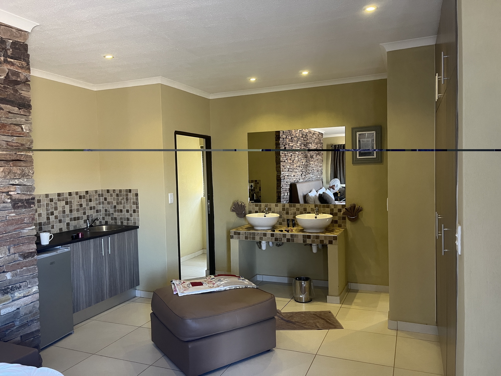 I did know that once I got to the turn off for the Hobas campsite it be pretty much all downhill. I checked on my map and it wasn’t all that far in so I went ahead and went went for it. I do want to see Fish River Canyon. I got lucky when I got here and got the Namibian discounted special that they were having right now and camping would’ve cost me 120 Namibian dollars or I could get a nice room inside for 238 Namibian dollars. Guess which option I chose? :) Anyway, there’s no air-conditioning so my room is still hot but I do have a fan blowing and the room is huge. I'll take it!