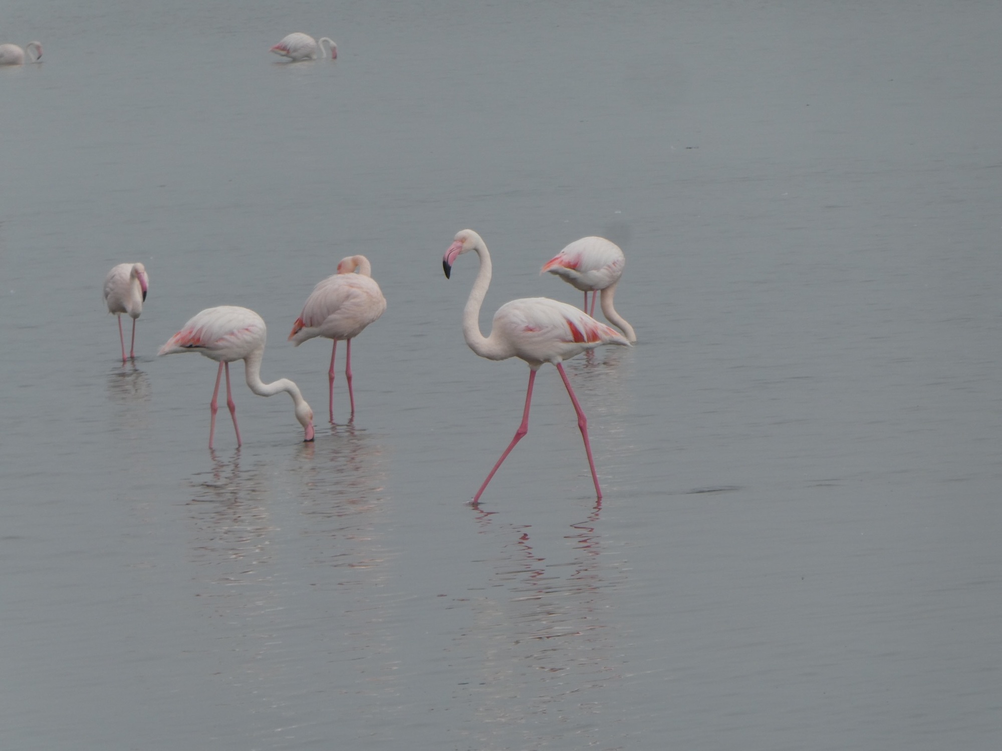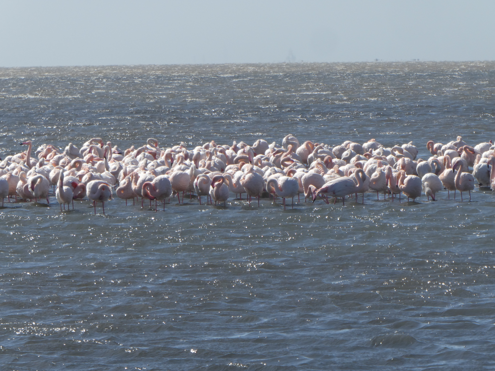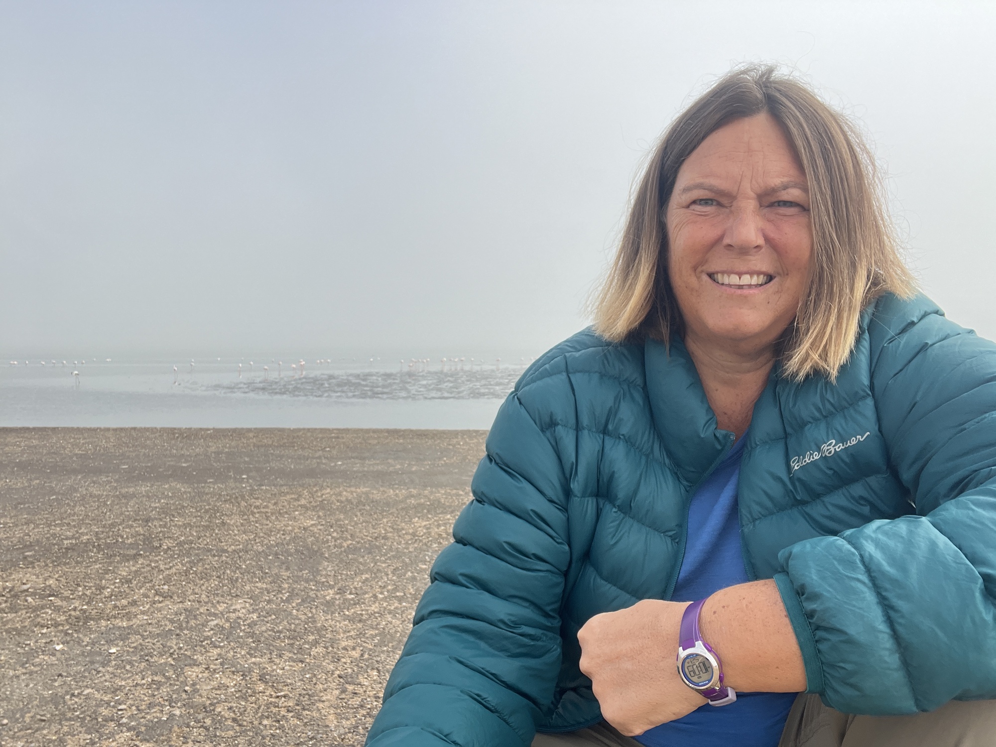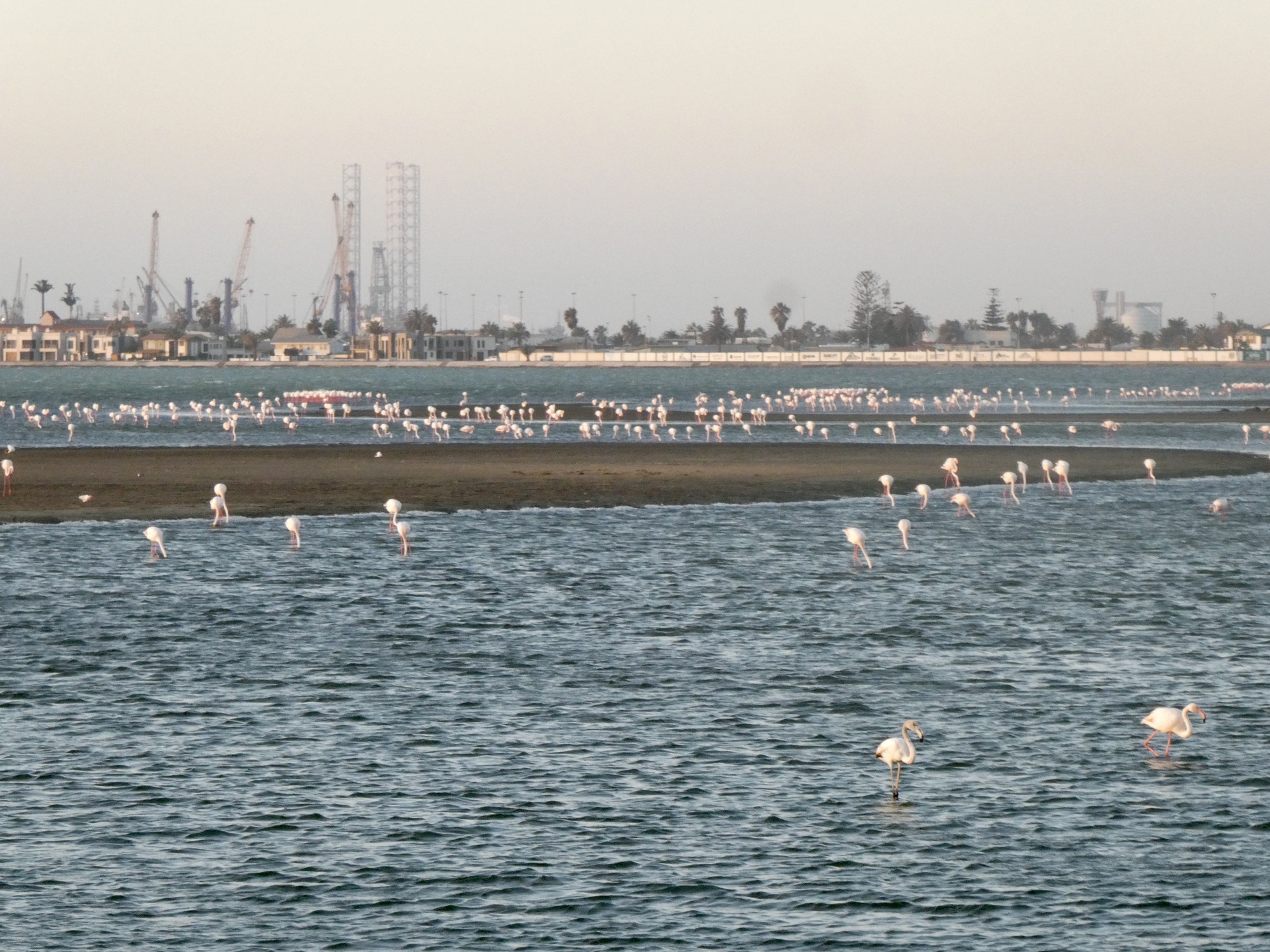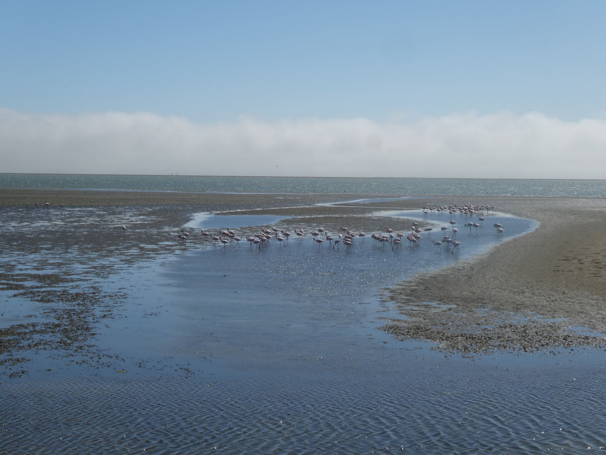 I spent one day walking around Swakopmund which has a very German feel to it. I even walked out to the sand dunes just to see them. The big thing I wanted to do was to kayak with the seals, but you have to go to Walvis Bay to do that. It's about 30km away. In the end, I decided I should just go spend a couple of days down there and I'm glad I did. Rumor has it there are flamingos in the lagoon also. I was not disappointed. The last time I went looking for flamingos in Mexico, I got stung by a sting ray. Thankfully, all I had to do was walk a couple of blocks and I could see them. No wading in the water required. I'm in flamingo heaven!