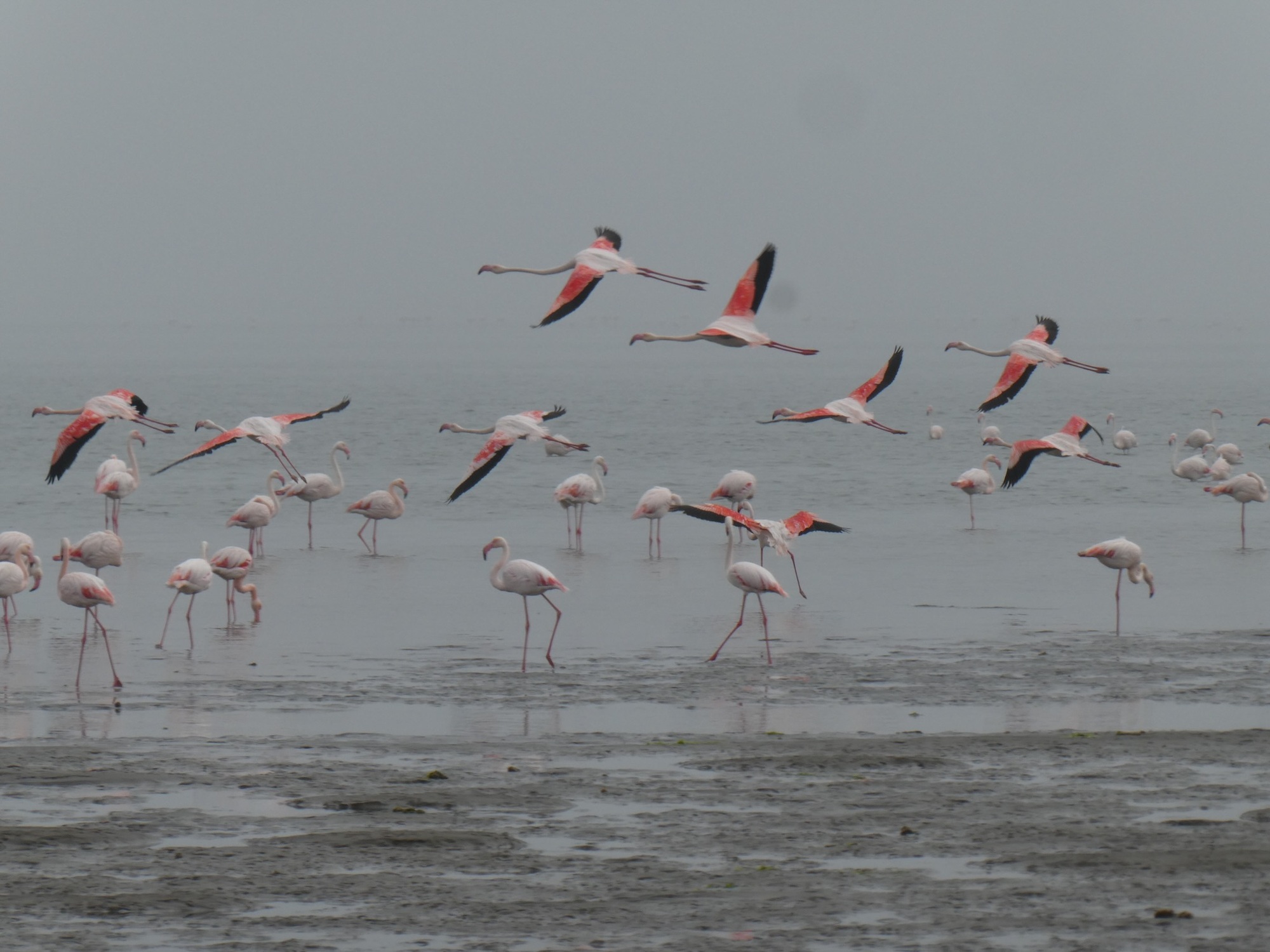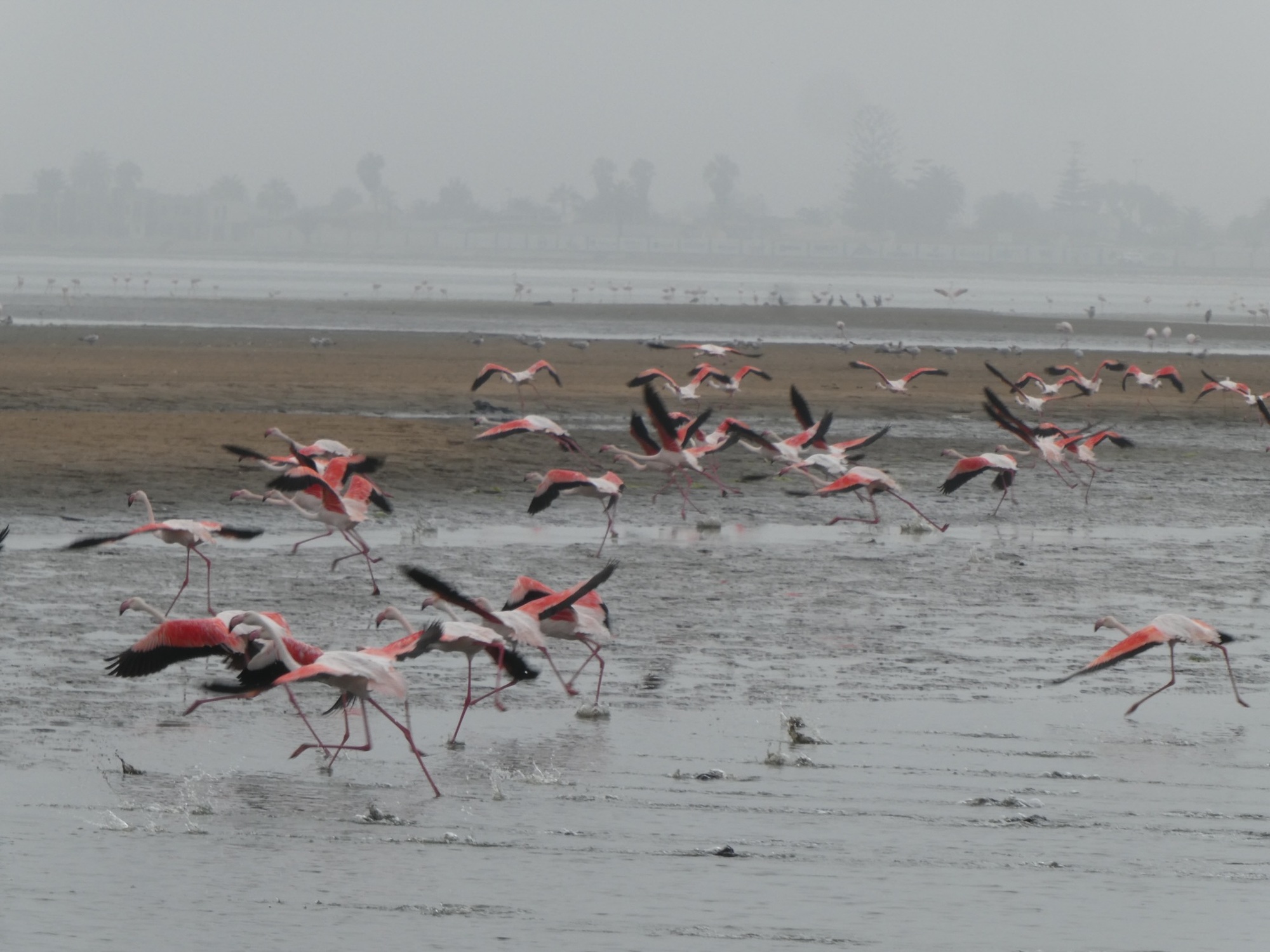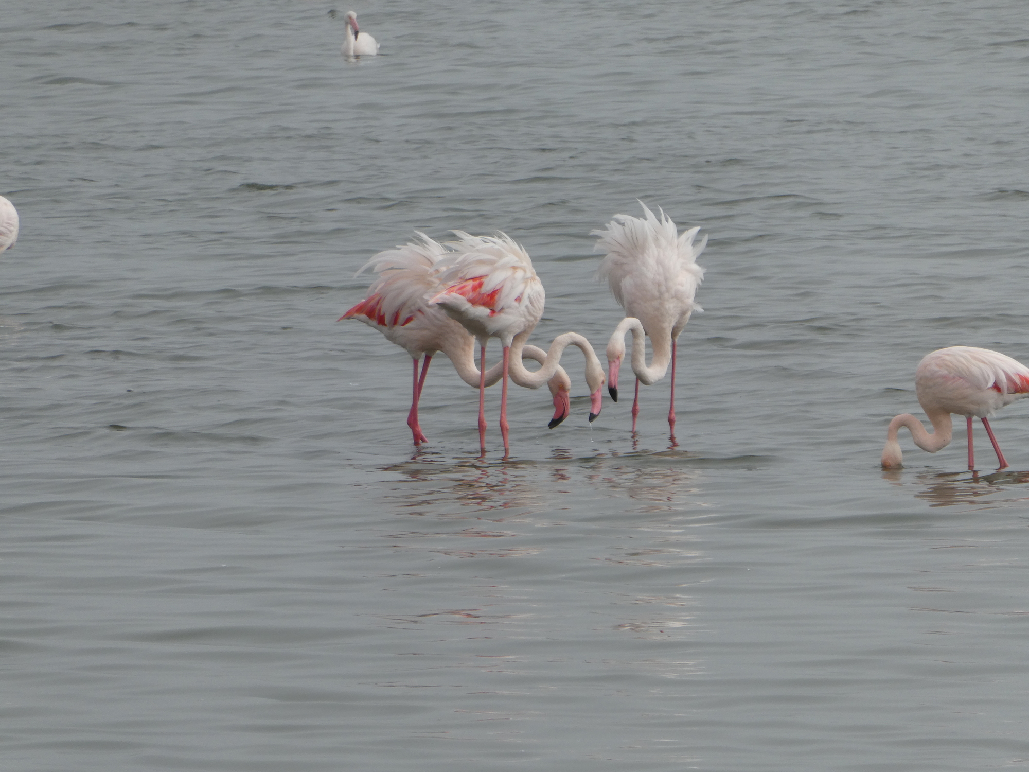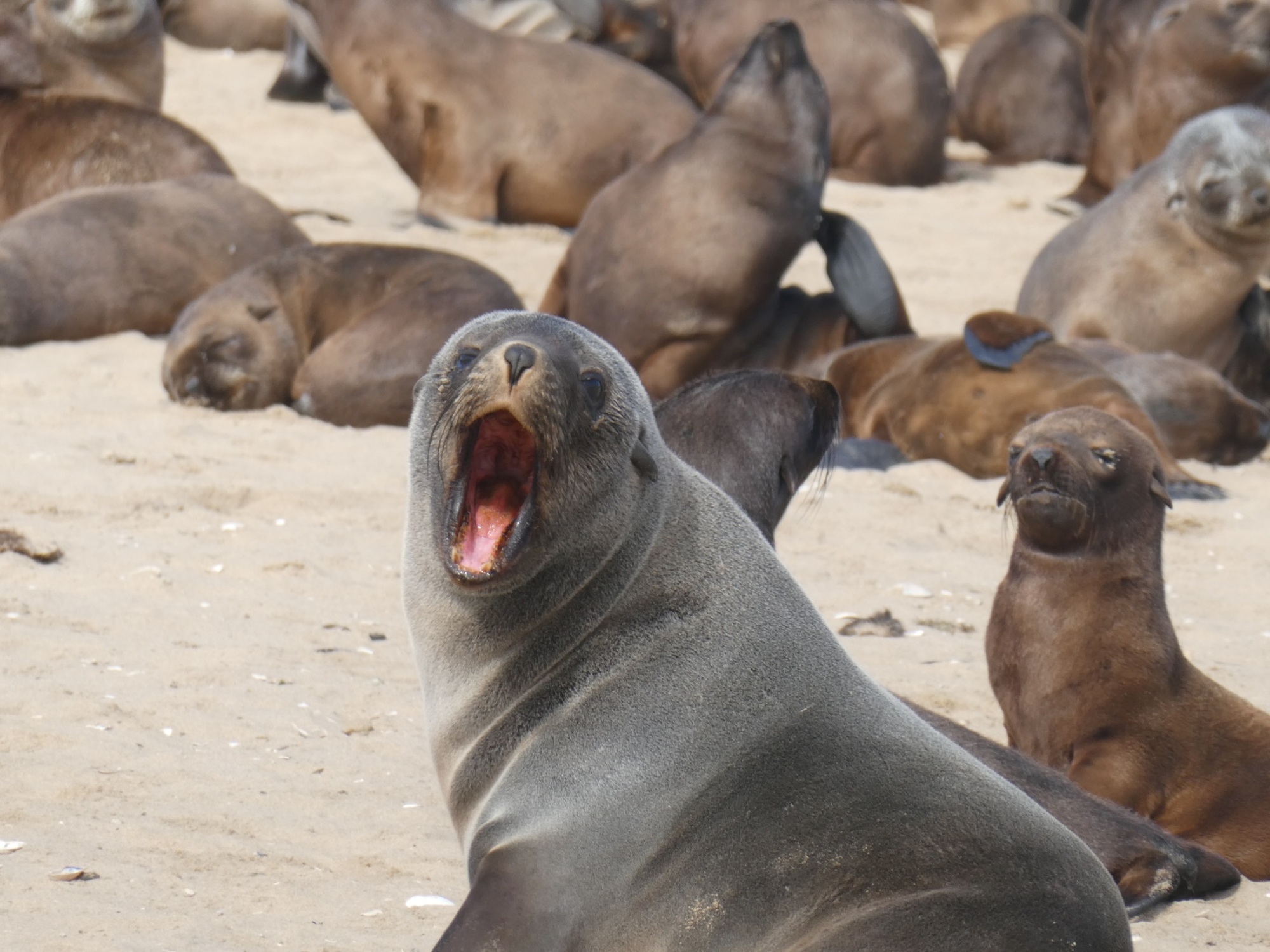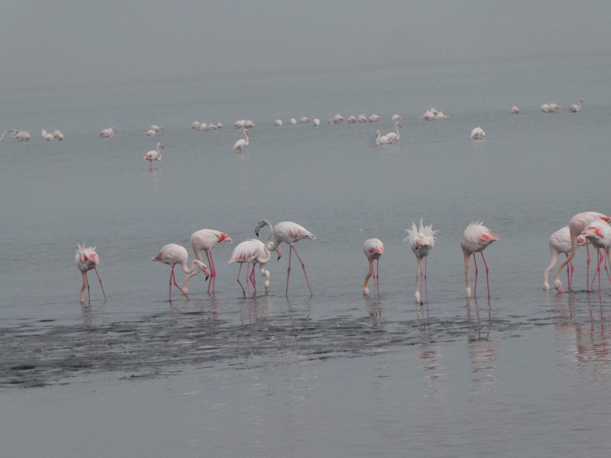 I spent one day walking around Swakopmund which has a very German feel to it. I even walked out to the sand dunes just to see them. The big thing I wanted to do was to kayak with the seals, but you have to go to Walvis Bay to do that. It's about 30km away. In the end, I decided I should just go spend a couple of days down there and I'm glad I did. Rumor has it there are flamingos in the lagoon also. I was not disappointed. The last time I went looking for flamingos in Mexico, I got stung by a sting ray. Thankfully, all I had to do was walk a couple of blocks and I could see them. No wading in the water required. I'm in flamingo heaven!