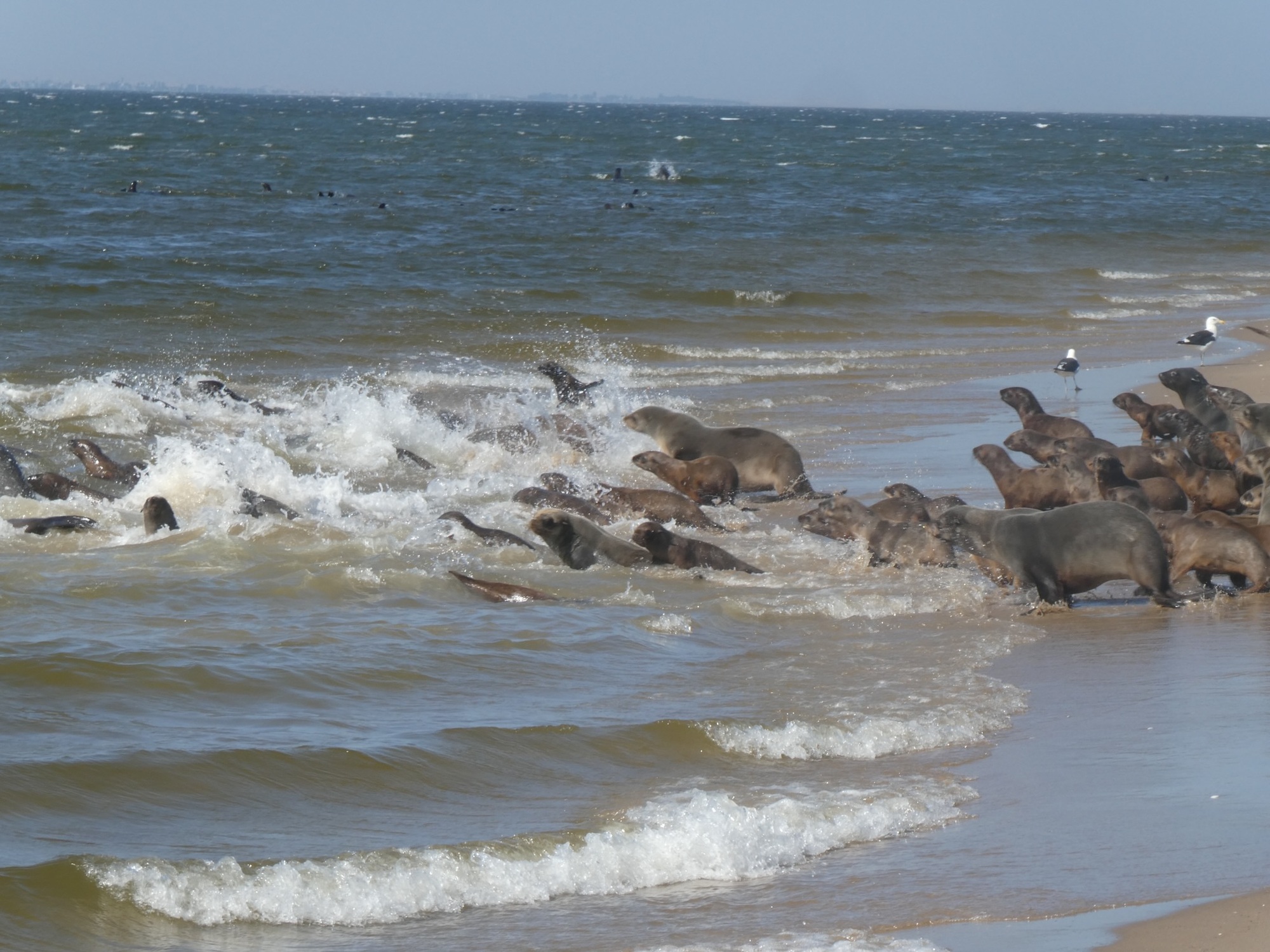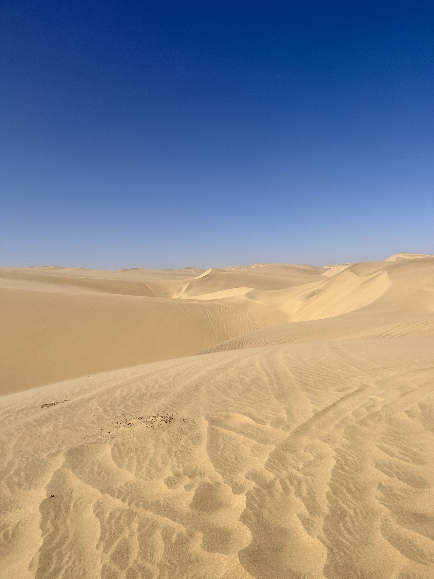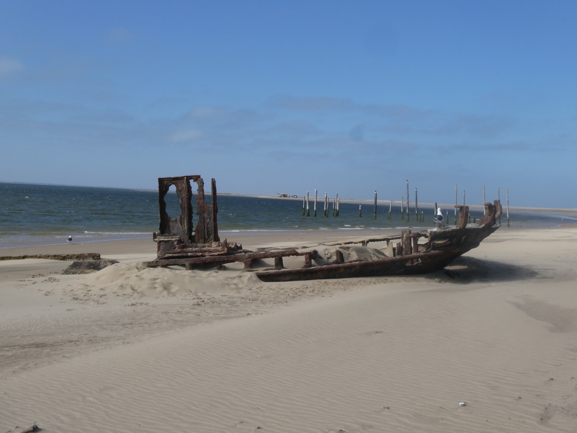 I did get a little car sick from all the bumps along the way. We drove on the beach right along the ocean. The dunes extend right down to the sea. It was exceptionally windy which creates sharp edges at the top of the dunes. This makes driving up and over them dangerous as you are more likely to get stuck and/or end up rolling down the hill -- not on your tires! We did go up in the dunes to get a fantastic view overlooking Sandwich harbor. However, because of the winds, we had to go back the same way we came in as the danger of getting stuck in the dunes was real. We found out in the morning that another tour group had gotten stuck for hours!