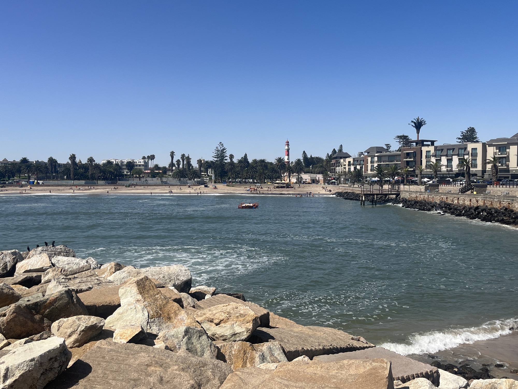 I’m I had thought I might ride my bike down to Swakopmund, but at the rate I am going (nowhere) I thought it best to take a shuttle so when my bike finally is ready, I can just head north. Swakopmund is east, at the ocean.