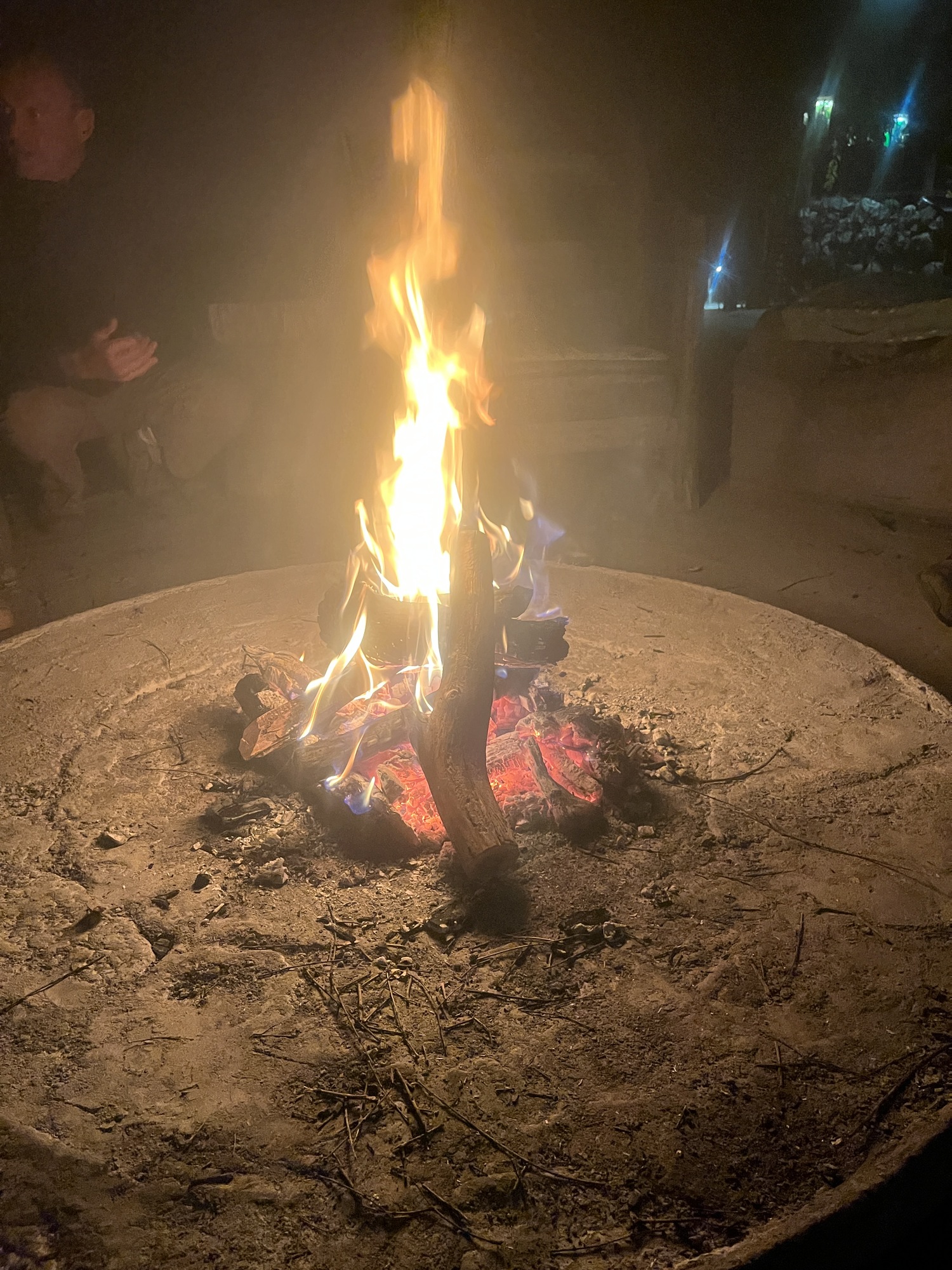 There is a waterhole here and I took the path to it twice, but not an animal to be seen. After dinner, (where I ate entirely too much) he guy said it would be a good time to go. He said it was too cold for snakes and scorpions and the electric fence keeps the big predators out. I thought I might brave it, but took about 10 steps down the path (it's about 100 meters total), shined my flashlight around the pitch black bush and said to myself, "Who am I kidding" and promptly turned around.