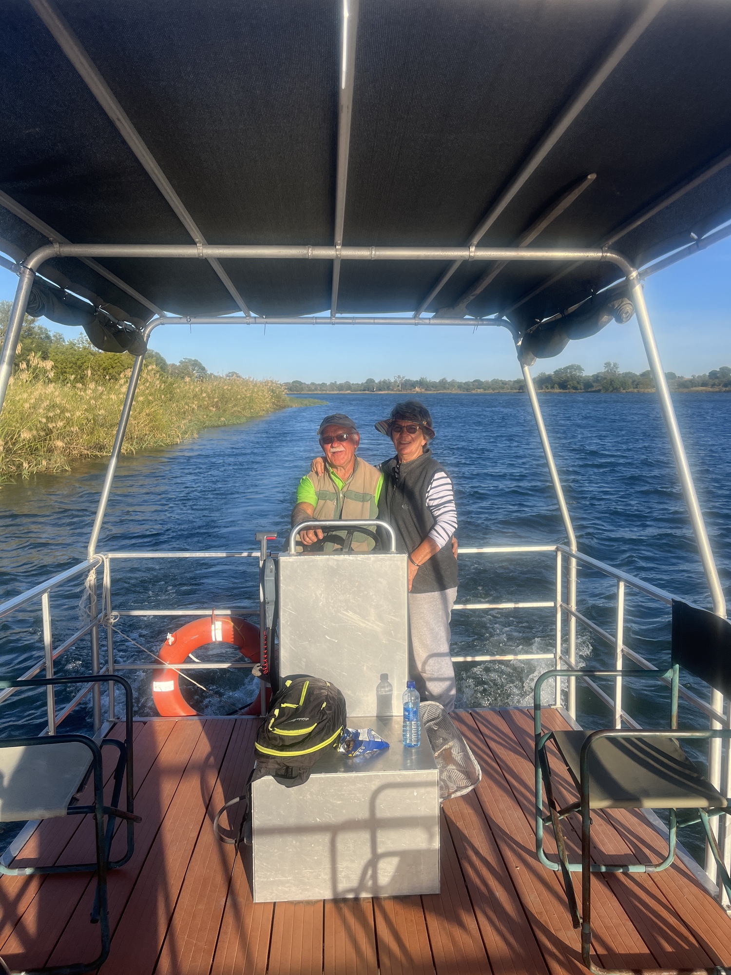 I decided to stay a second night because I could and because I was so happy to be camped by the river. And I'm in no hurry especially with the headwind. Ansie and Hannes offered to take me out on a boat ride to look for croc and hippos on my rest day if the wind died down. Luckily, it did and what a fun little excursion.
