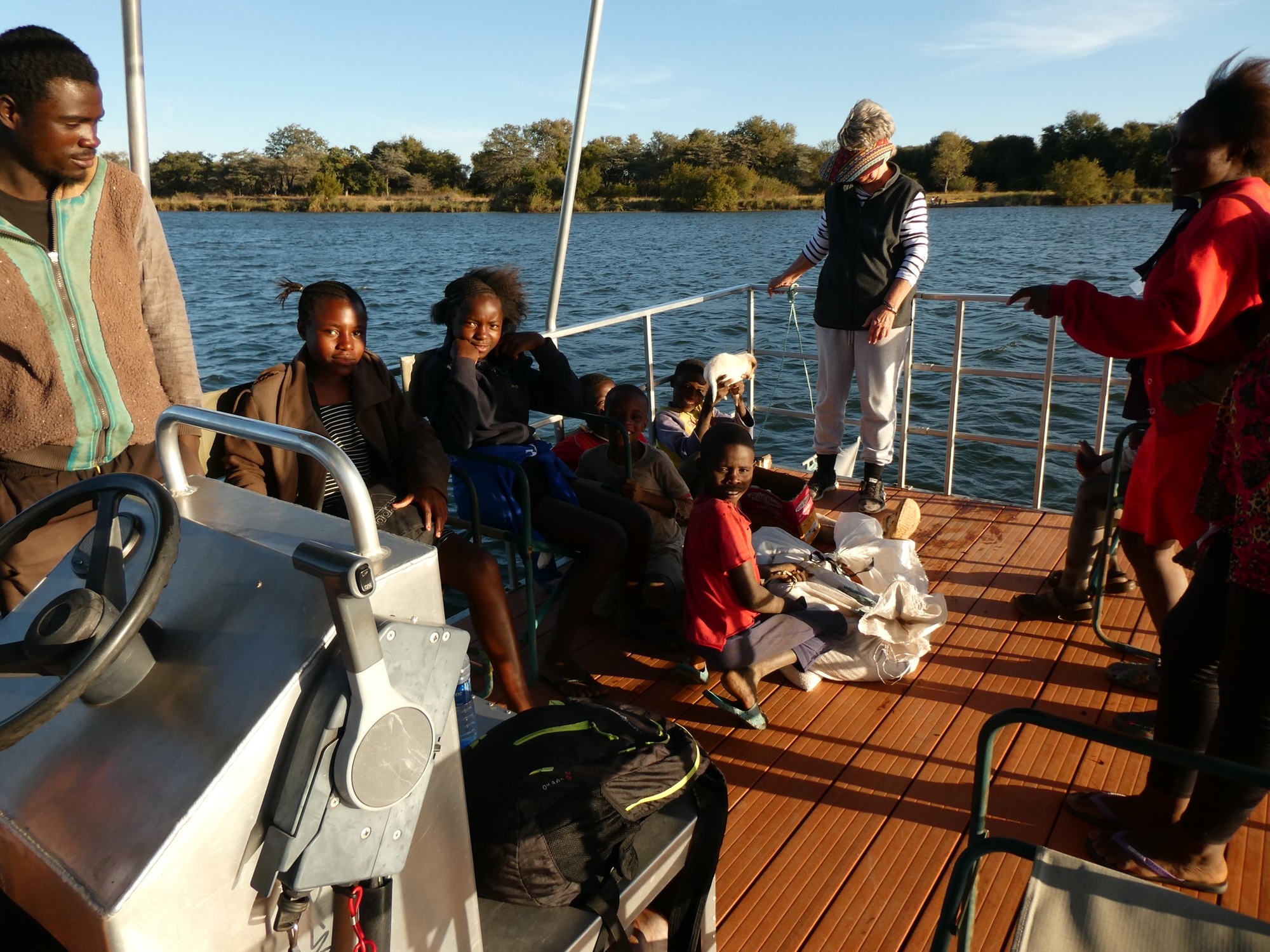 It's the locals way of life. Here, school children are waiting to get shuttled across the river from the Angola to Namibia side in preparation for the school week ahead. Hannes and Ansie gave a bunch of them a ride.