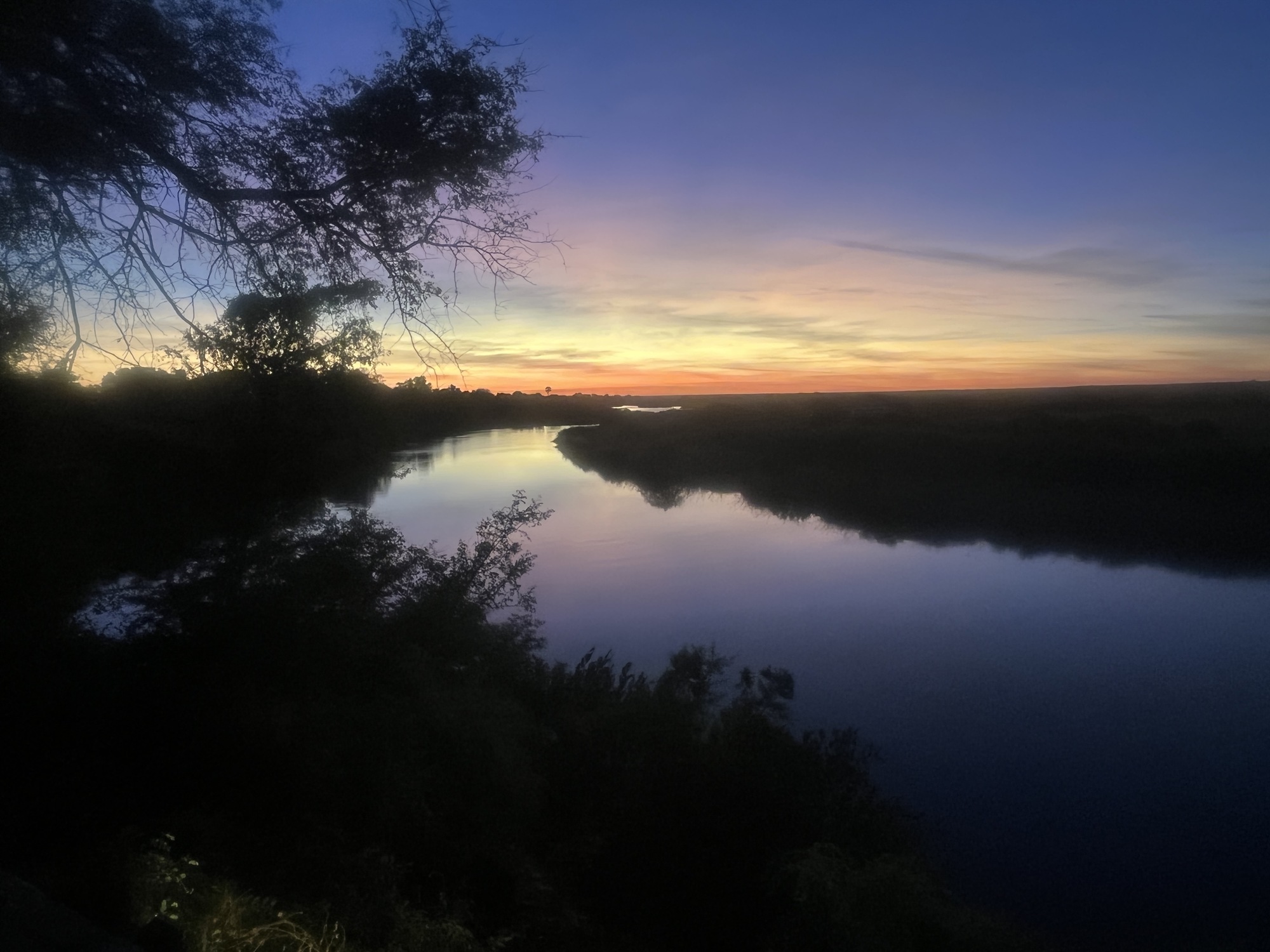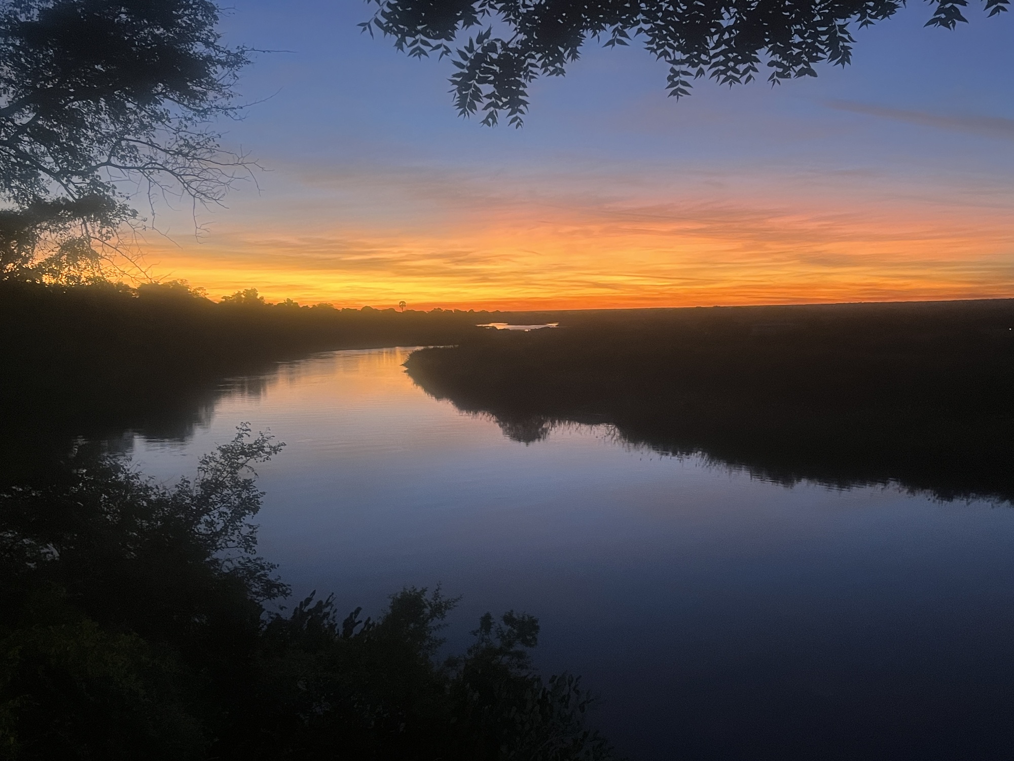 I actually planned to meet up with Philipp, a cyclist from France heading the opposite direction. (Forgot to get a picture, darn it.) It was nice to have company and we had dinner from the restaurant while watching a fantastic sunset from up above the river. I heard hippos, but except for one quick full head sighting, I mostly just saw their noses as they surfaced for air.