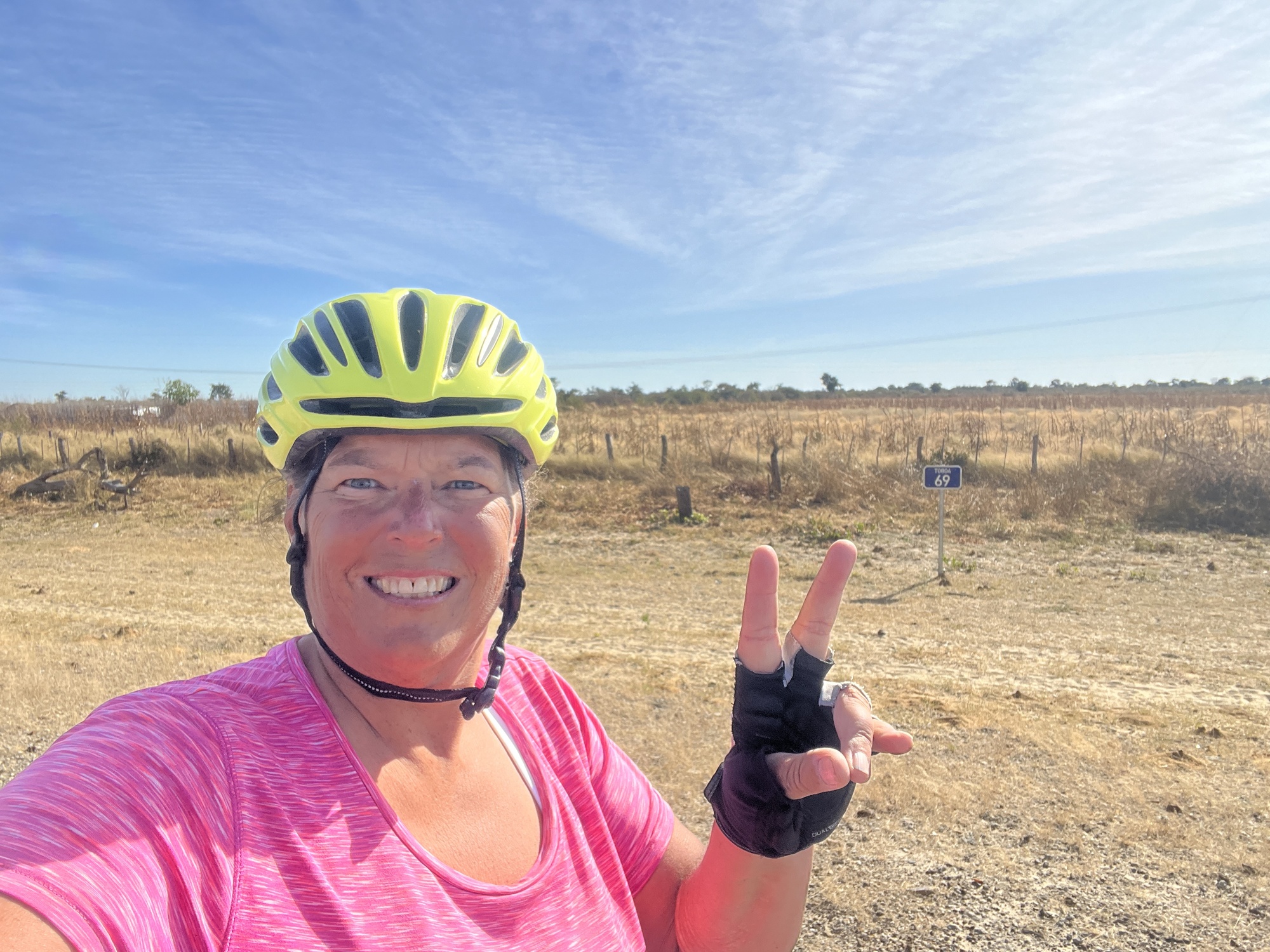 Hannes and Ansie are headed out on vacation for a week so they will be passing me on the road. I asked them to stop with a cold water if they saw me. But first, Hannes drew me an excellent little map to get back to the main highway. I am going a different way out than how I arrived. He gave me a head start, but it was still a solid workout first thing in the morning. You see, he was also kind enough to transport my bike gear to a junction about a mile away so I didn't have to contend with a heavy load on the sand. Very nice of him as I'm pretty sure they don't do this for all the cyclists. It was much appreciated!