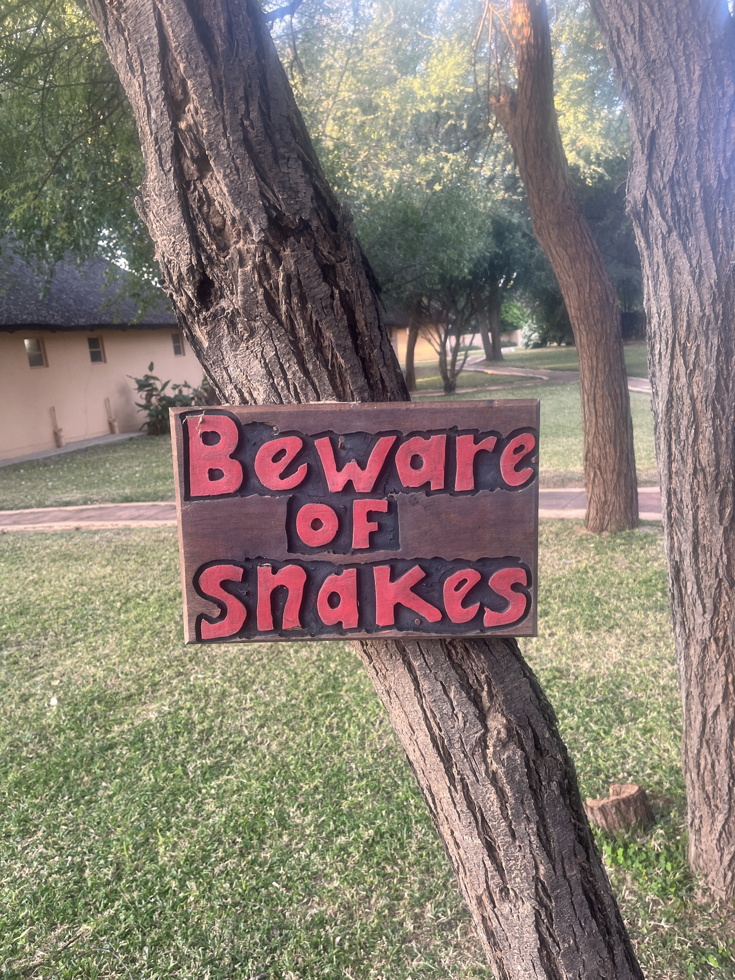 There were signs around saying "beware of snakes" and another guest asked about it. Not an issue now as the weather is colder, but I did learn that they once had a cobra up in the trees. I didn't actually realized that cobras would climb trees! They had to station a security guard by the tree as the local snake catcher said it was too dangerous to try and remove it. I also found out that the snake catcher just had his third snake bite. I think he needs a different profession! Just sayin'