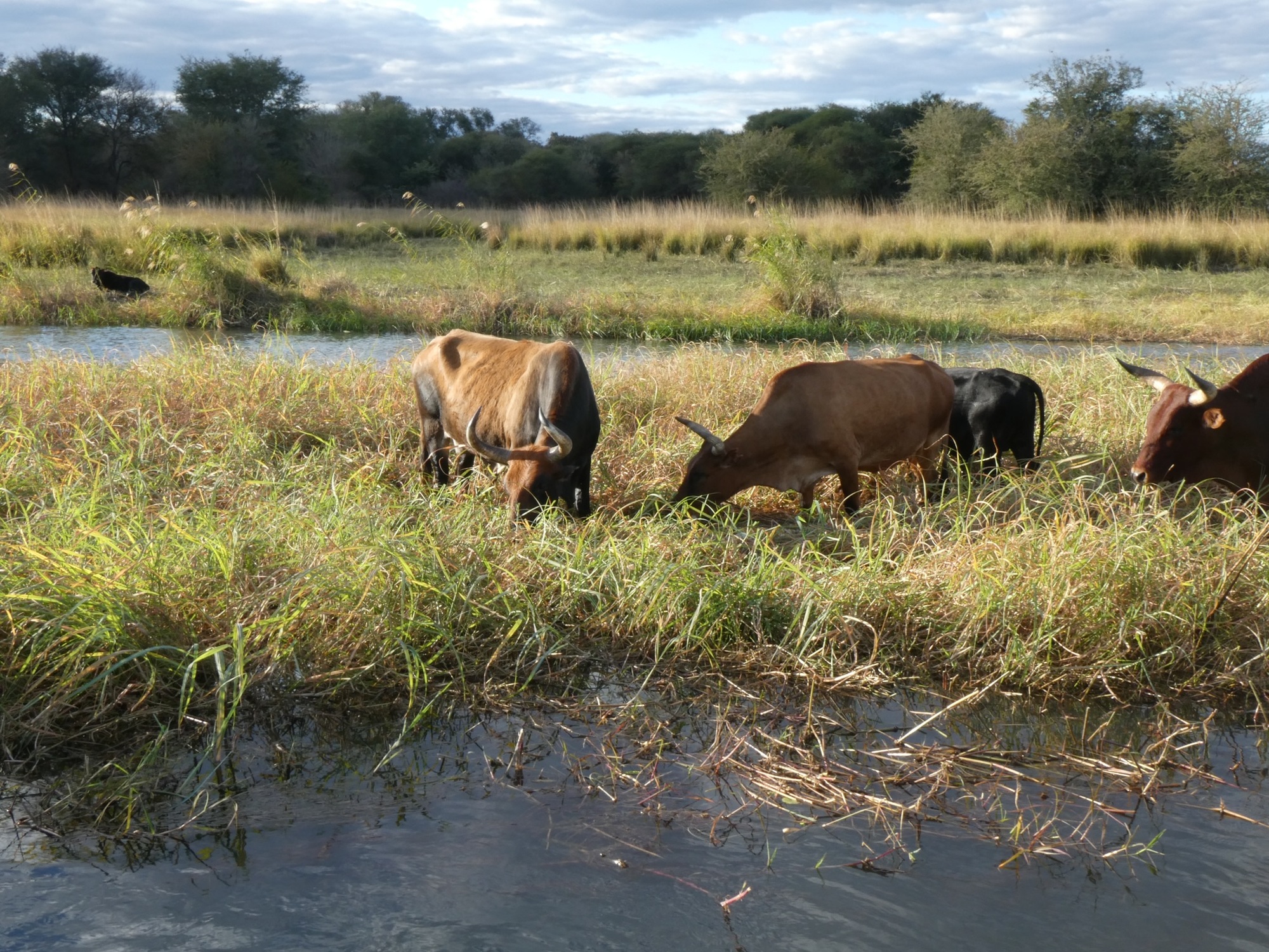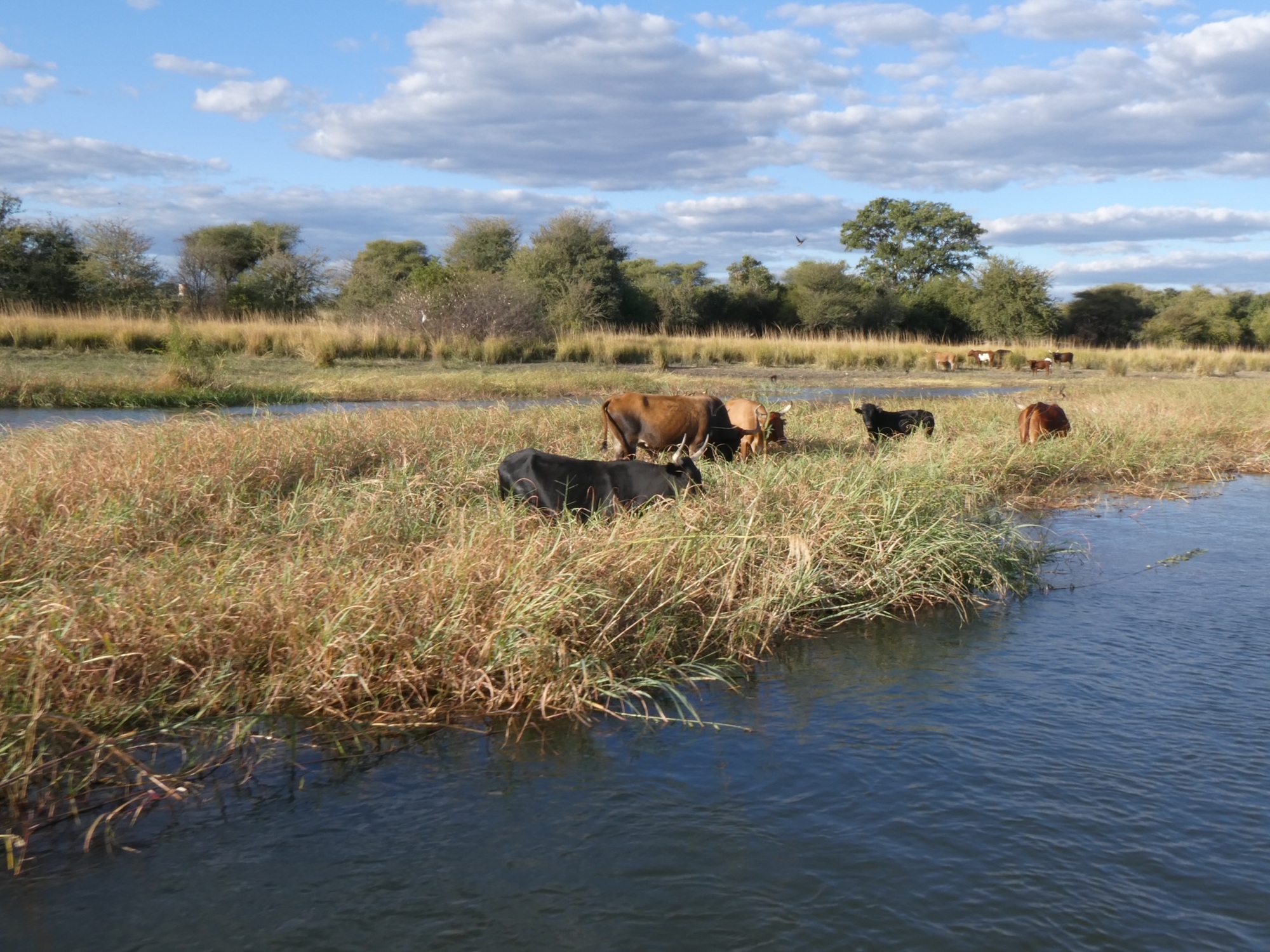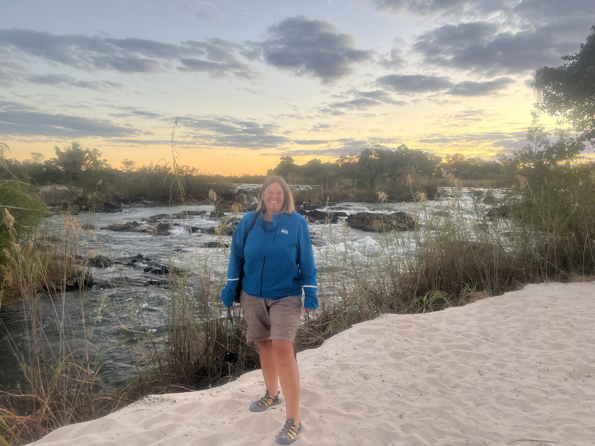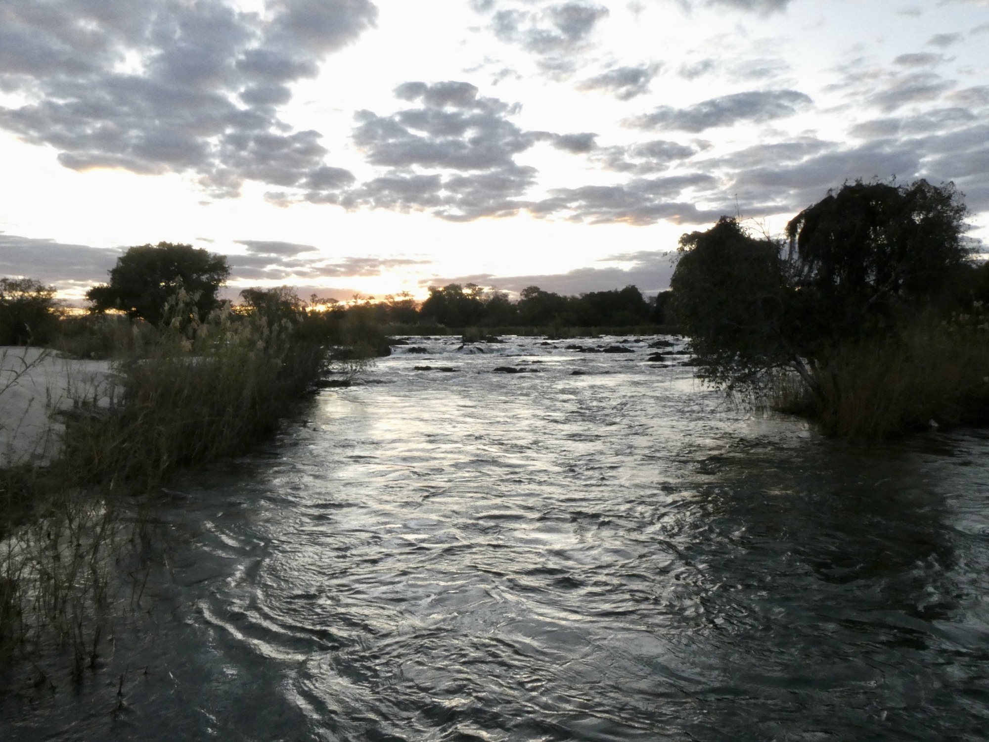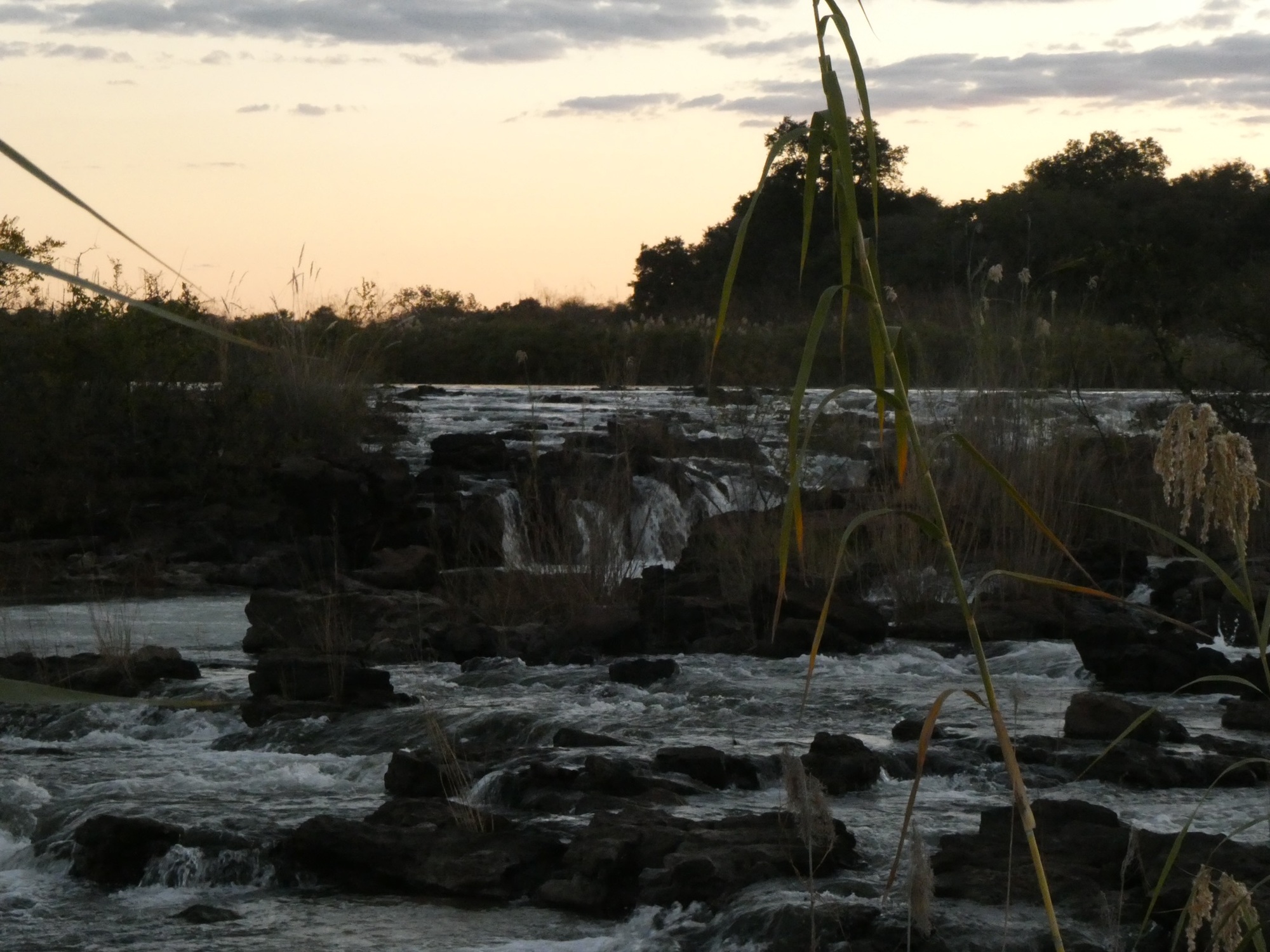Today, I arranged to meet up with Peter, a cyclist who started cycling late in life and has now been on the road 8 years! I told him the owner was going to take me somewhere where I could maybe see hippos and then I’d walk back. Asked him if he wanted to go and he did. She dropped us off at the neighboring lodge and introduced us to that owner so he wouldn't wonder who these people are hanging out. Next thing I know he's saying, "Quick, go hop on that boat" and just like that we got a free tour of the river and Popa Falls. Talk about lucky! What a treat! He said he'd worry about how we'd back later as we couldn't walk back in the dark. Since we went right by our property, we asked the skipper to drop us off and he did. Perfect. I called the owner of the lodge again to thank him.