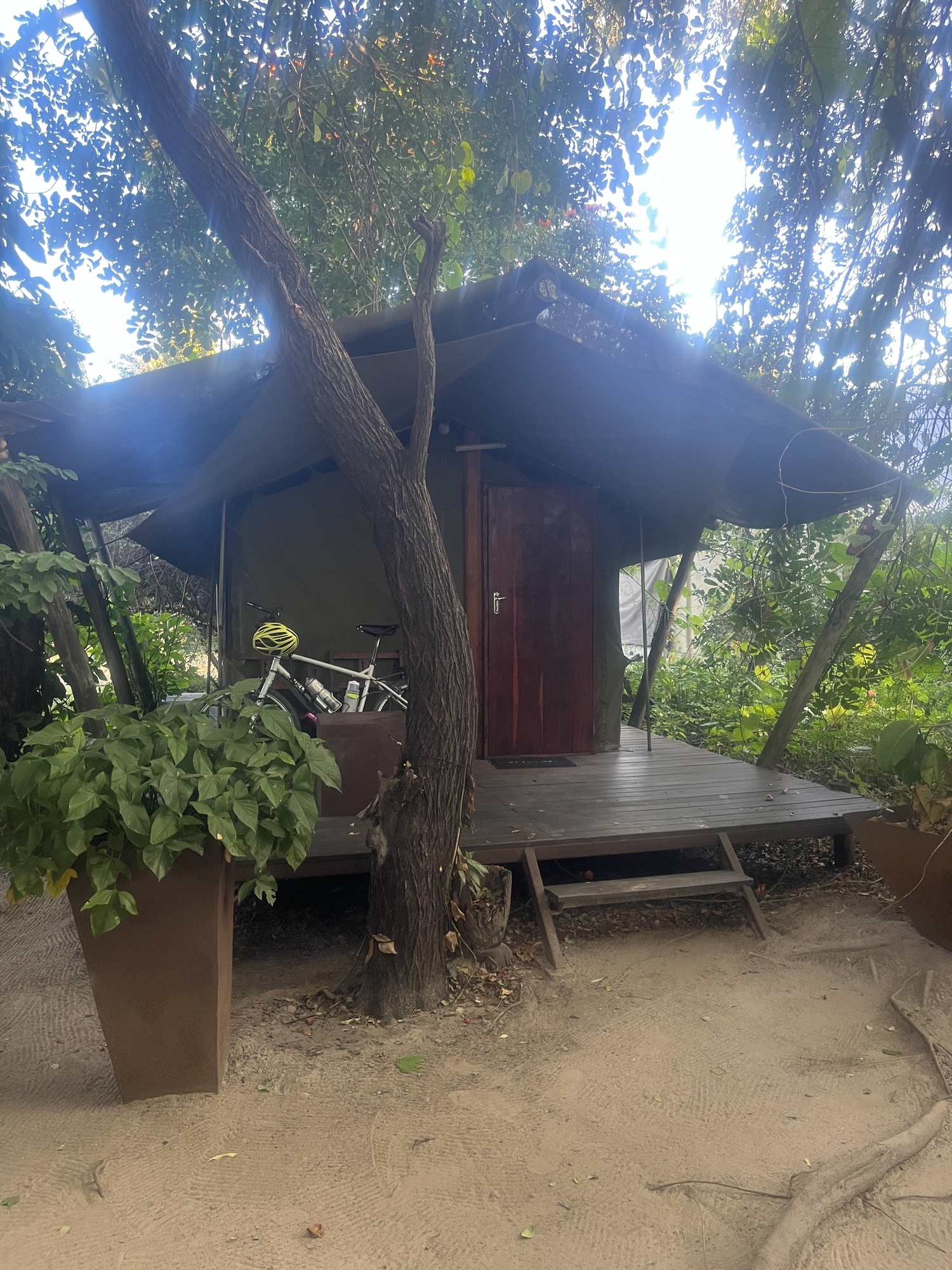 Another cyclist had told me that cyclists get a discount at this place. As I rolled up, I was greeted by a guy working there and the owner showed up shortly thereafter. Cyclists can actually camp for free, but I took a discount on a tented room for the first night. I t was more than I thought I had been told by the other cyclist, but I just took it because I wanted the bed. It was one of those attached outdoor bathroom situations again which if it was warmer, I probably would have enjoyed more. I've since decided the tented rooms are actually way colder than just sleeping in my tent so I opted for my tent the second night, because yes, I spent an extra day here.