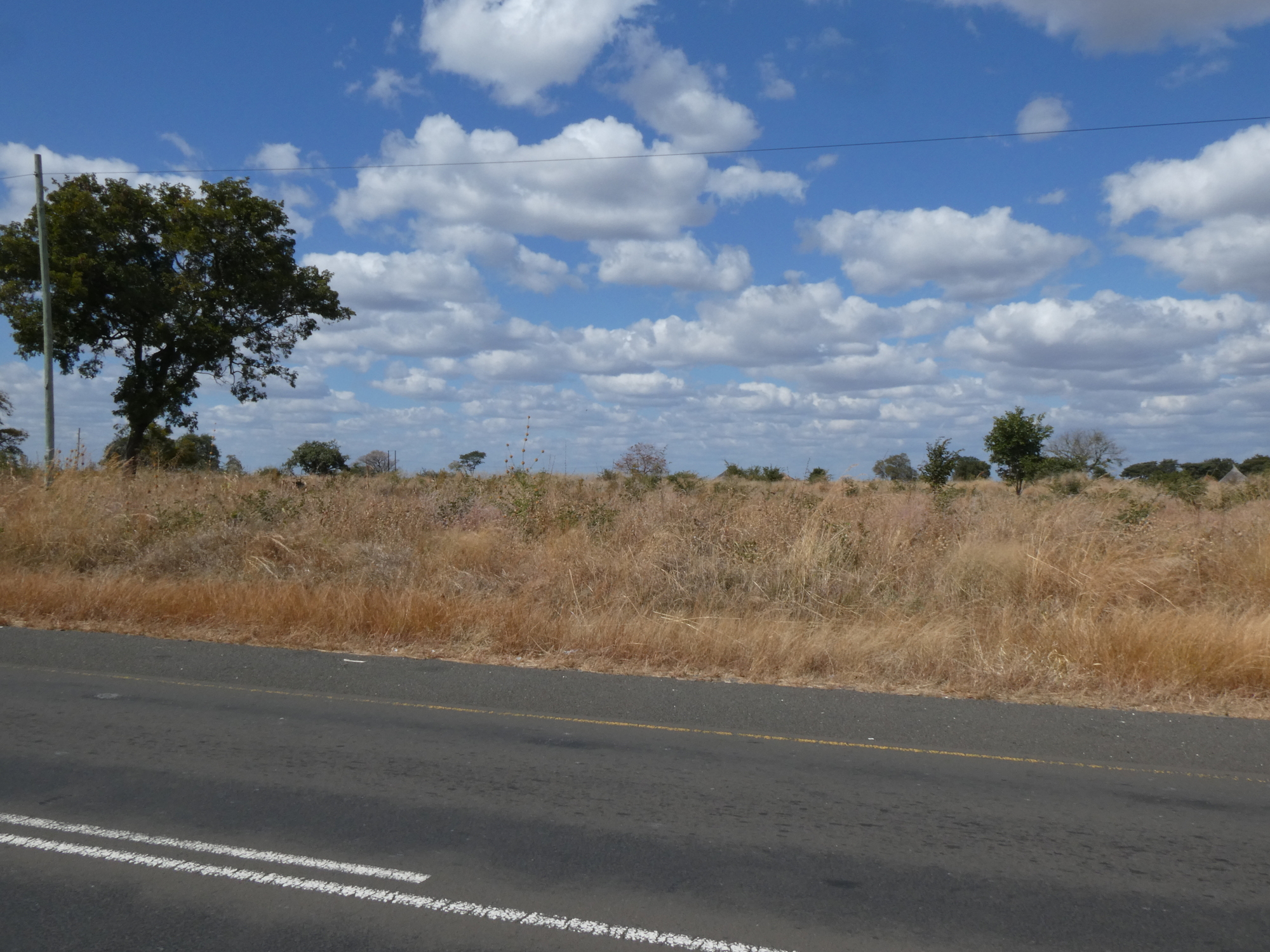 I had lunch at a "truck stop" and almost was going to ask to camp there, but it felt a bit isolated. I pushed on. On a brighter note, the scenery was decent. Lots of greens mixed in with tall yellow grasses. I have been hesitant to blast my music because of road conditions, but it would help drown out the 50 million trucks passing me. Now I know why everyone was talking about the Zambia trucks!