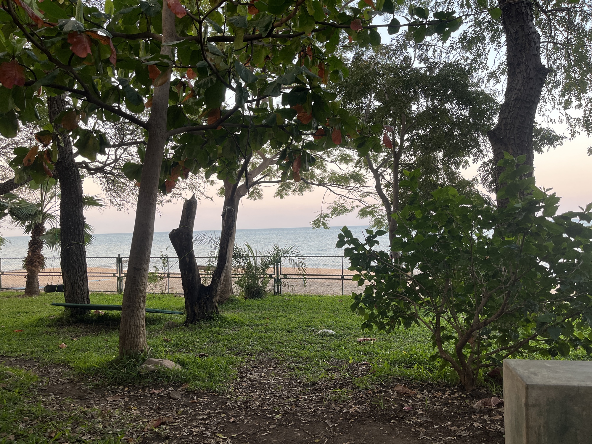 I'm camped next to the lake and get to visit a preschool with 100 kids tomorrow. I'm the only one here except for the owner and security. The guy here runs a foundation/preschool and I did have a nice chat with him. He assured me the water would be warm for my shower. It wasn't. Another couple who camped here a few years ago said the same thing. I think he likes to tell us it will be hot, but it was barely warm. It would have been better if I would have showered immediately, but he didn't even let me get settled at all before talking up a storm about his foundation. (His wife initially ran it to, but they ended up divorcing and she moved back to Europe. Although her idea, he decided to stay and run the foundation.) It was nice to hear the stories and he did bring me a cold drink, but it was a bit much on arrival. I did go up and visit with him again later once I was settled and that was enjoyable.