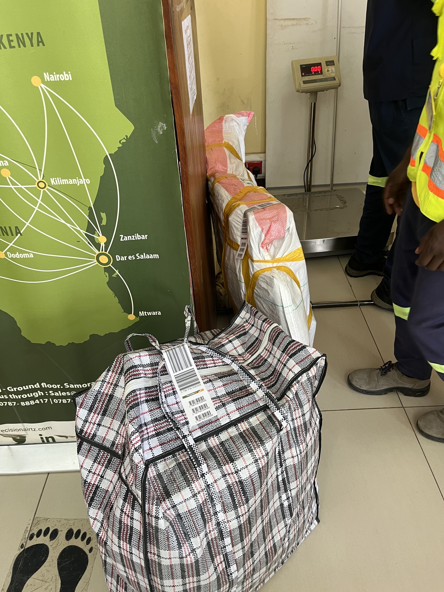 I picked the better of the two airlines for a quick flight to Zanibar. But first I had to get my bike boxed up. Except there are no bike shops let alone bike boxes. The owner of the Sombrero Hotel offered a ton of assistance by having her employees go out with me looking for boxes. Of course I have to pay for them and they want to overcharge me. For about $9 US dollars, I got supplies and paid the locals to pack up my bike -- padded with some stuff and shoved into their gigantic grain bags. Whatever works. It's padded and protected way better than I could have done myself. What a relief. Let's hope Precision Air doesn't trash it! I still need it to get around Zanzibar!