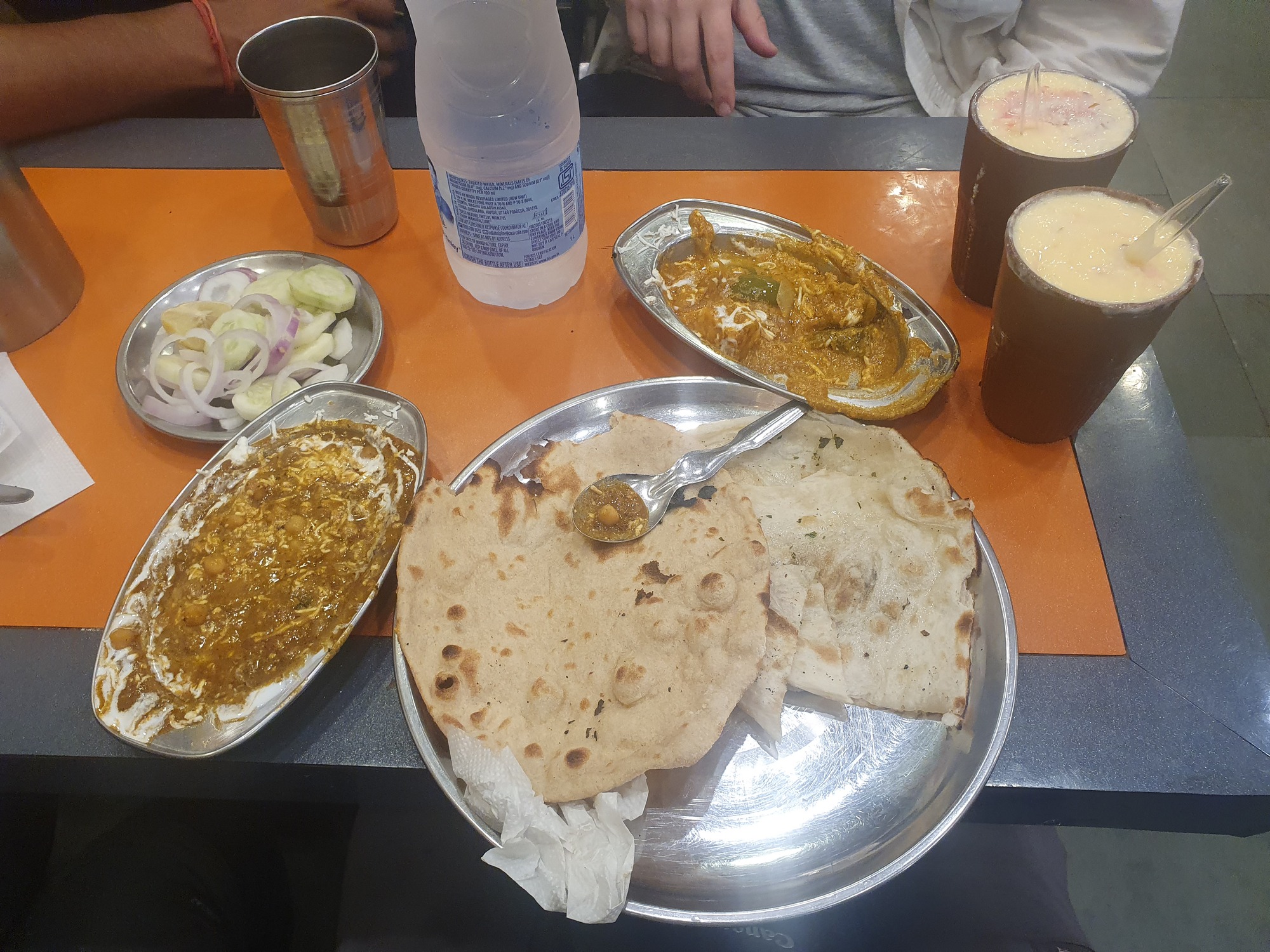After an hour or so walking around I soon accepted the chaos and embraced it, starting to appreciate the more positive sides, starting with the incredible food! Our bellies were starving after the flight and we couldn’t wait to feast on some real Indian food, which has always been my favourite (although probably not at the time of writing after 5 months in India eating mainly curry). We found a local dabbah 5 minutes from the hostel and ordered buttery chickpea masala and vegetable curry with naan and a thick mango lassie on the side. It was a delight to the senses and filled a lot of cravings with buttery and creamy sauce exploding with flavour from the fresh spices. After finishing one round we instantly ordered a new dish and ate until we couldn’t eat anymore, all this for only £2 total! This dabbah would become our go to local place for the next week here.