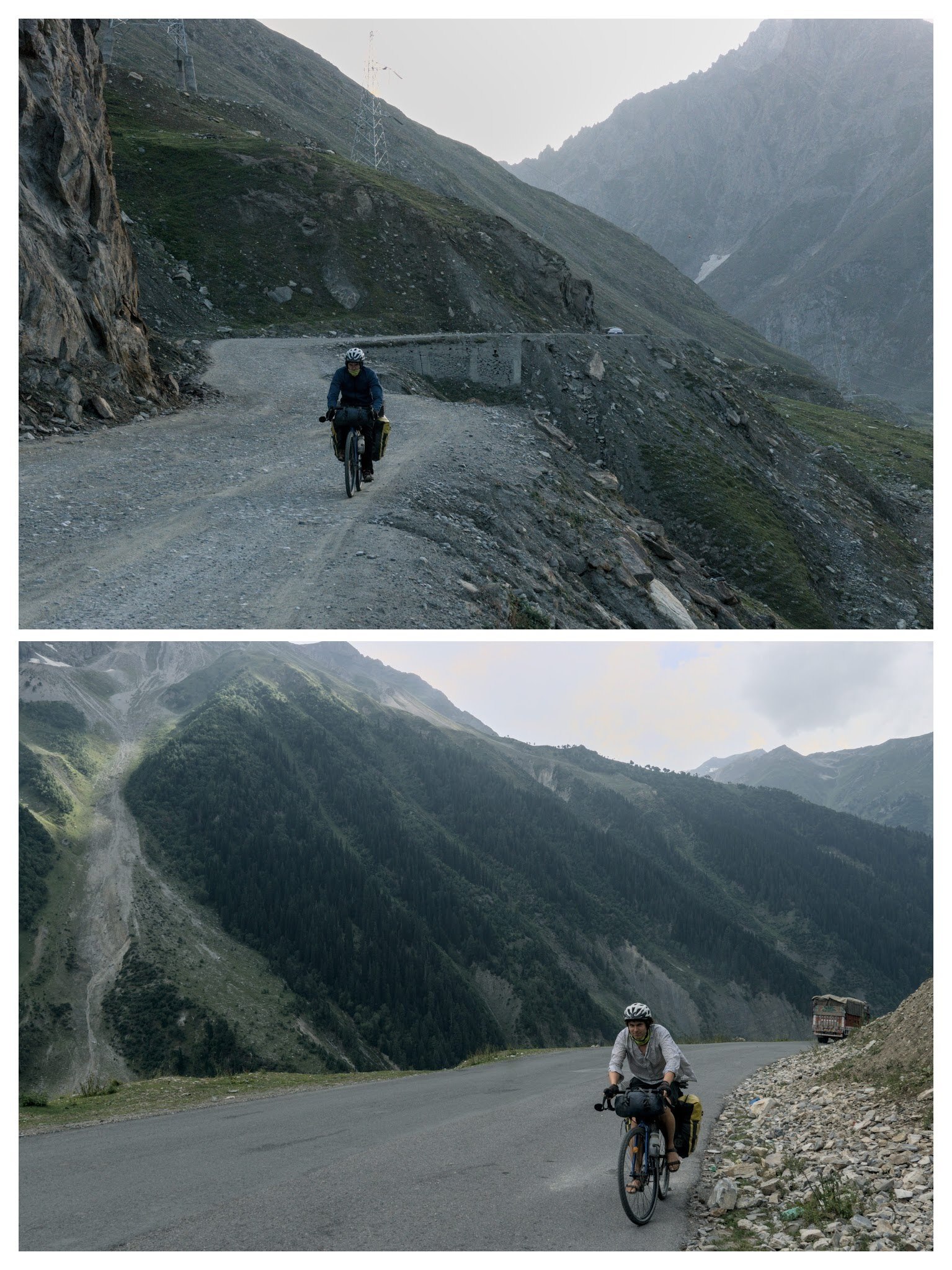 Cycling in a new region is always exciting and Kashmir didn't fail to disappoint. The lush green mountain views made the mostly uphill ride fly by, as did people stopping me, giving fruit or suggesting to marry their daughter. Food was delicious and we were still over the moon with being able to eat curry 3 times a day for dirt cheap. Unfortunately camping wasn't that easy here as there were people everywhere but we always found a room where we could haggle down the price to a couple of pounds each and pitch the tents inside to escape from the bedbugs.
