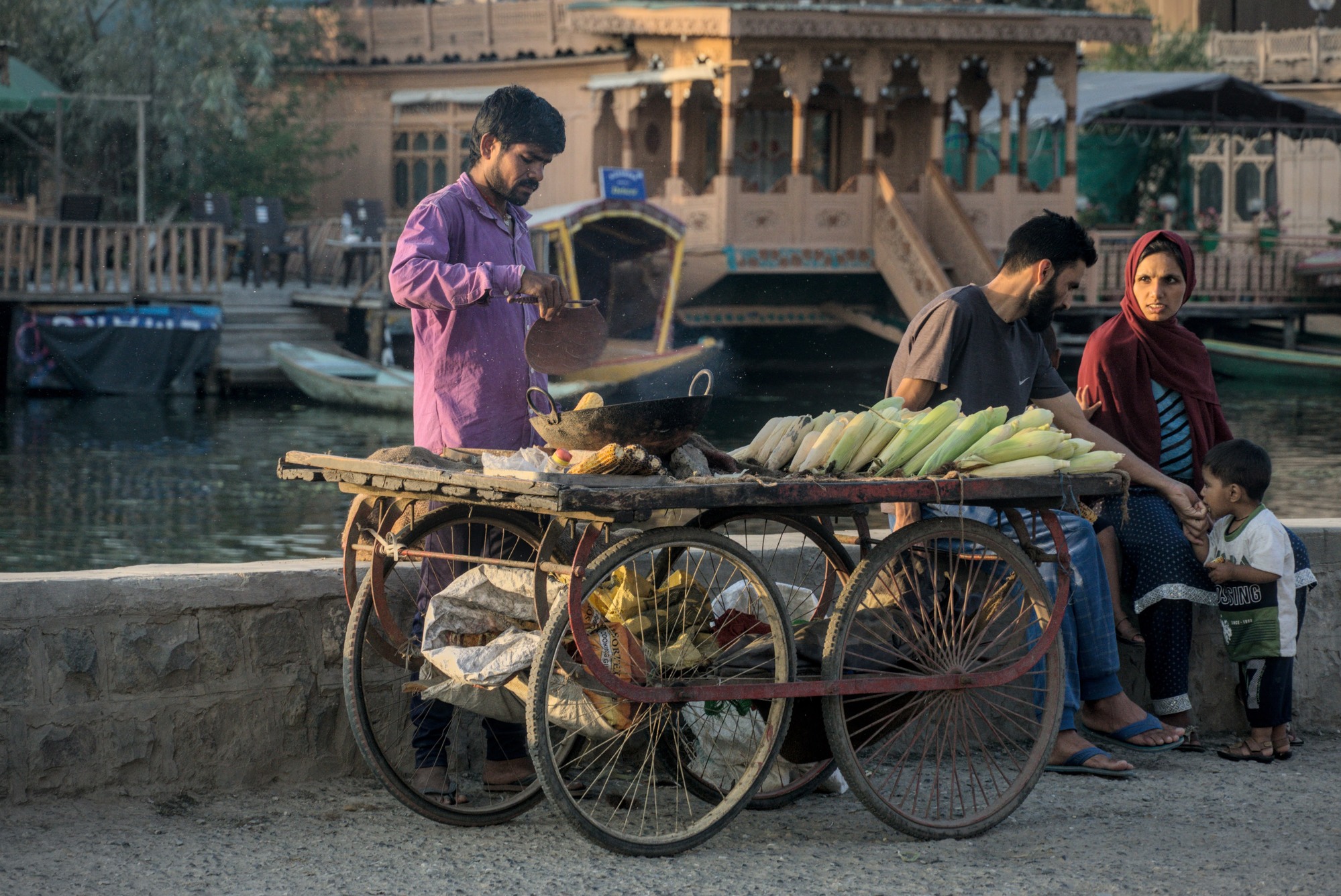 I made a friend with Junaid who thought I was a youtuber when I was taking portraits of strangers. We chatted for a while and he seemed trustworthy so I accepted his invitation to borrow his scooter to drive around Dal lake. We stopped to eat pakora together and talk more, it was great to meet an interesting local who could show me around teach me about the troubled history of Kashmir. Junaid is a Muslim like the majority of people here and welcomed me inside the large mosque where he pointed out writings on the wall of people begging for good grades in school; he had contempt for these kinds of wishes and thinks it is degrading Allah to make wishes like this.