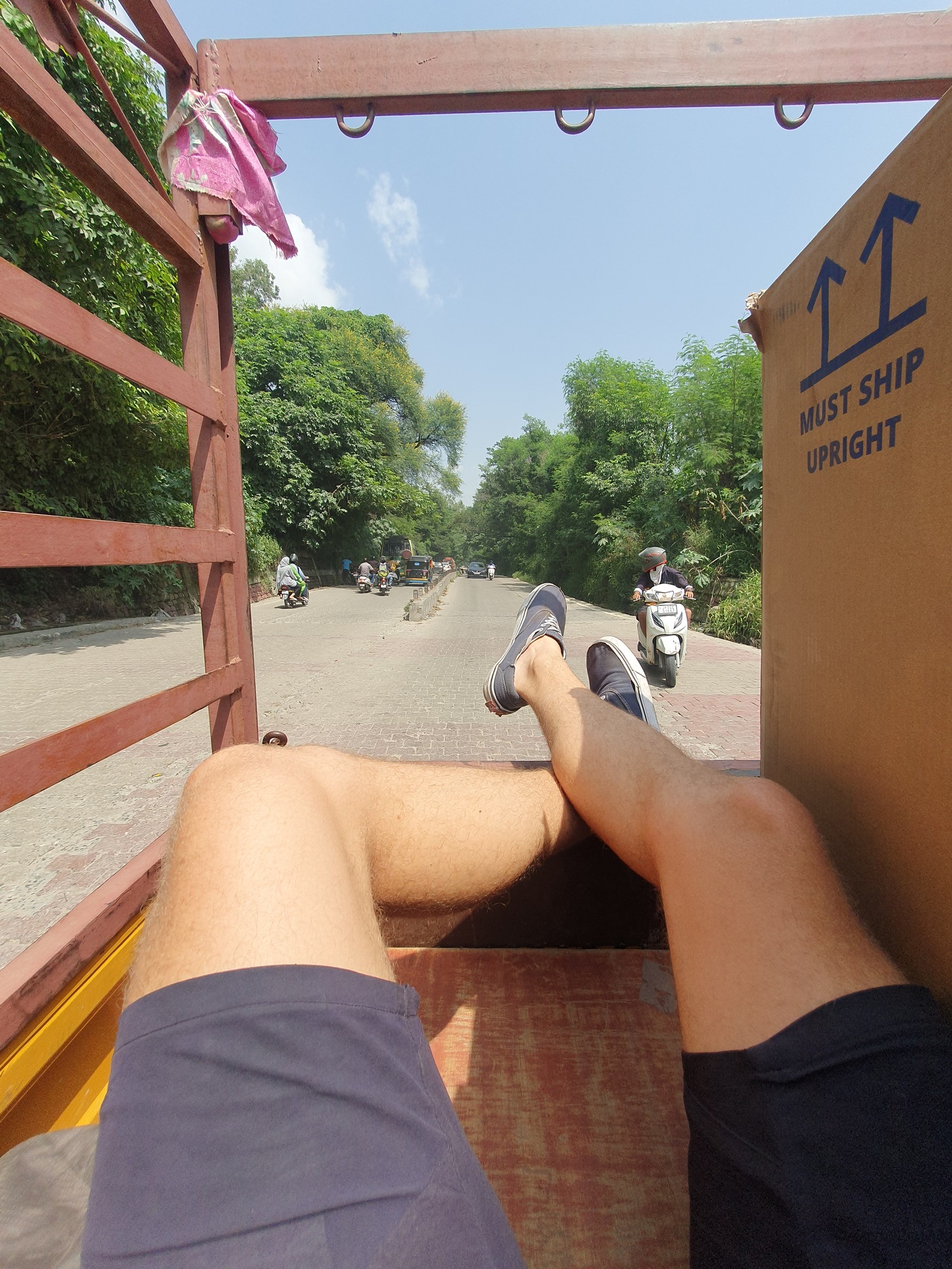 Not fancying cycling out of Delhi in August we opted to take public transport up Jammu and then to Kashmir which was an adventure in itself. The first problem was getting the bikes to the coach stop, we gave it an hour to get to the station and ordered an XL cab, the first one showed up and wouldn’t accept the bike boxes, second the same and before we knew it we had already missed the bus and wasted the money. The next day we successfully ordered a van to take our boxes, we were dropped off at the location provided and then contacted again saying that the location was wrong, there was a tuk-tuk conveniently waiting at the point provided by the coach company for a high price which felt like a huge scam. Somehow we fit three bicycle boxes on top and three of us in the tiny electric auto and arrived to the coach which wouldn’t leave for another hour anyway. Seb and I were crammed into a small box room and Nabil shared with a stranger, It was clear they are not designed with tall Europeans in mind so the next 16 hour drive was a little cramped.