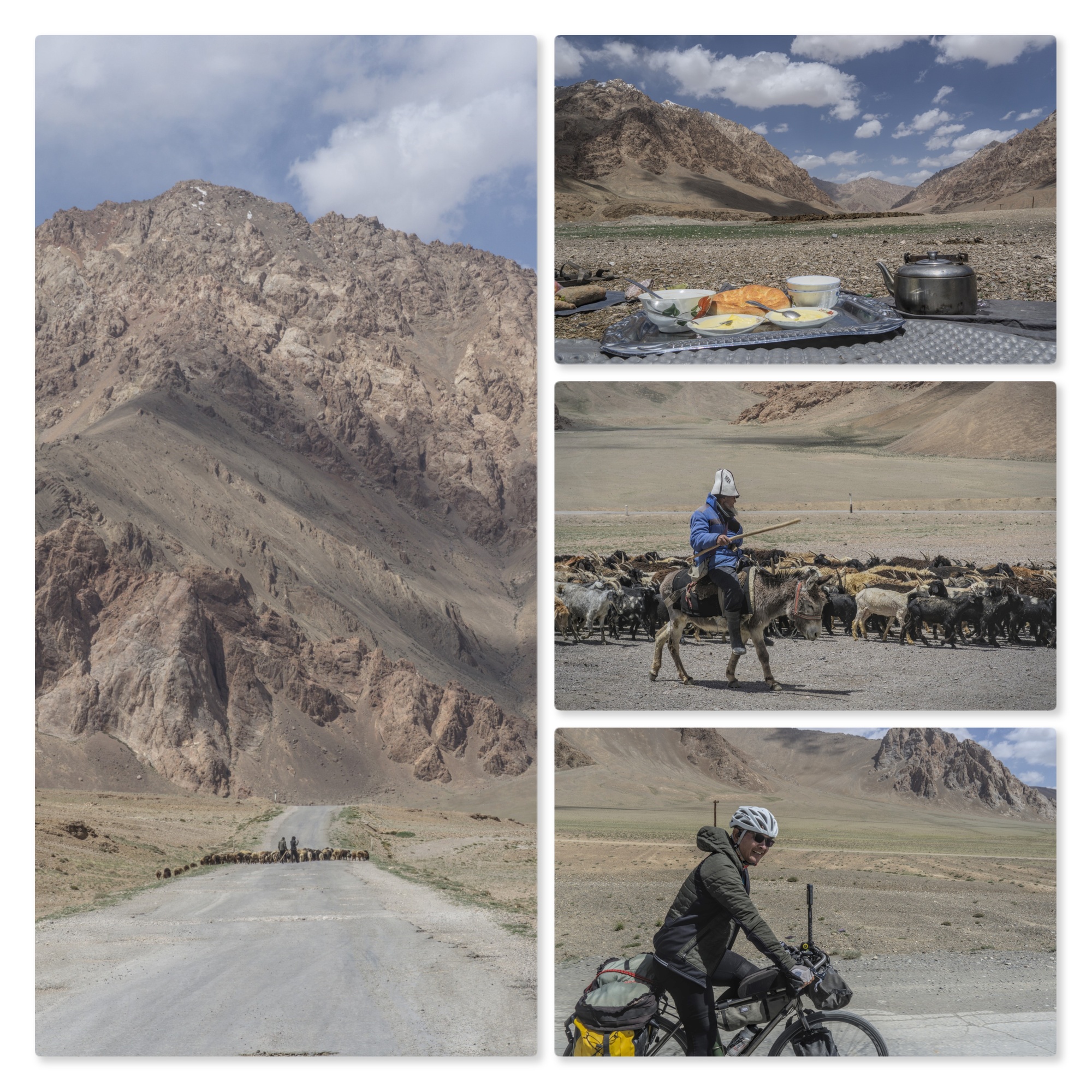 Leaving Alichur the next day and speeding ahead of Seb, I saw a bike with yellow paniers that looked like his, questioning my sanity in the increasing altitude, I caught up to the mystery man to find someone else. Lim was a 67 year old bike traveler from Singapore. He has travelled over much of the world with and without a bike and it was fascinating hearing his stories whilst riding together and over lunch of cream, butter Kefir and Milk tea (I cant imagine how you'd survive being lactose intolerant here).