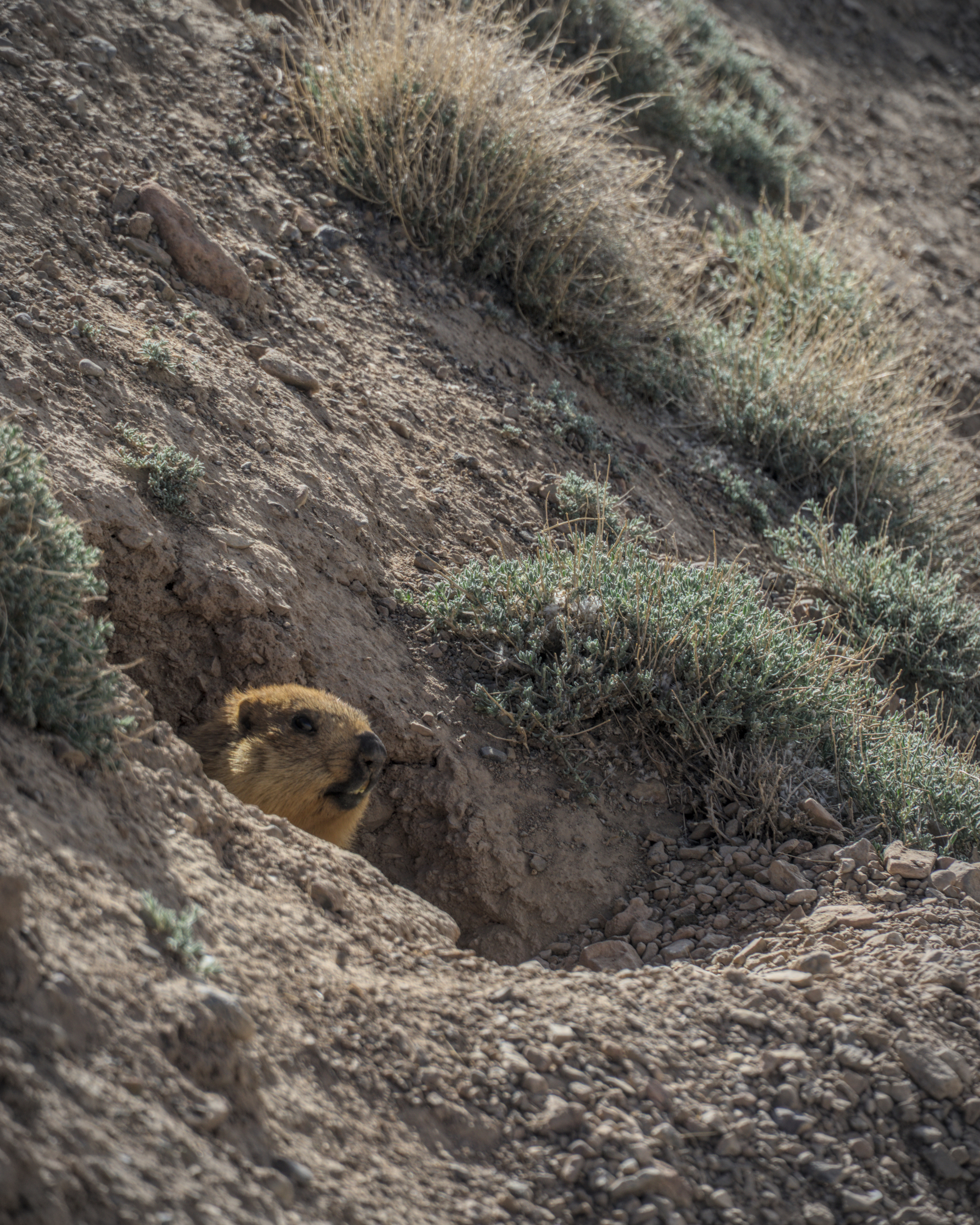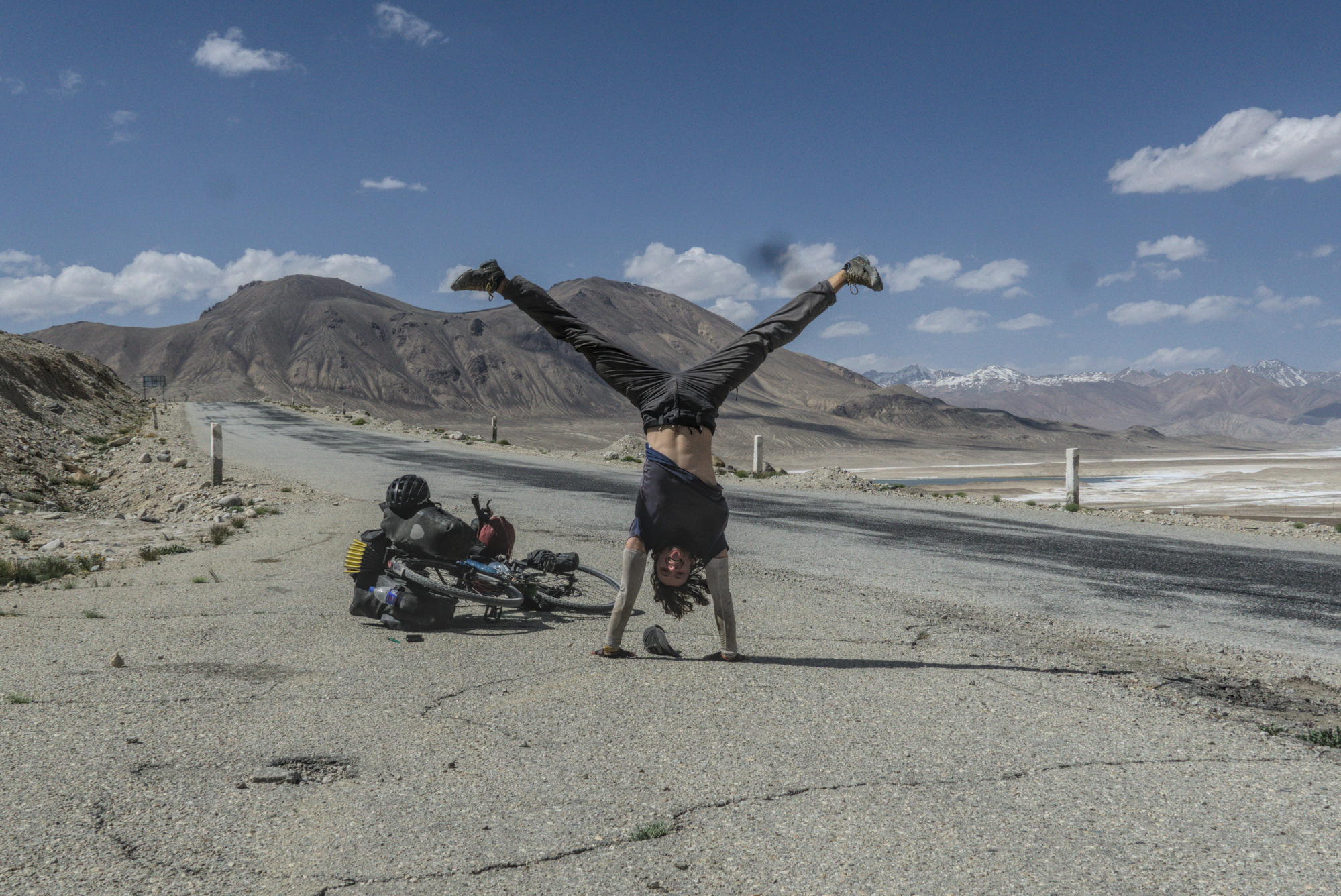 We were managing just 30km a day due to the worst road quality I've cycled on and because we didn't want to camp too much higher than the night before too avoid altitude sickness. The sandy washboard was draining, killing my back, hands and my spirit as it stretched on endlessly though the mountains. The views though were fantastic and I loved the isolation up here, just us and the marmots, pushing ourselves under our own power up higher than I've even been. The pass (4400m) was slightly underwhelming with no clear summit and the downhill was significantly worst than the uphill, slowing myself to a crawl and often having to push the bike though the thick sand.